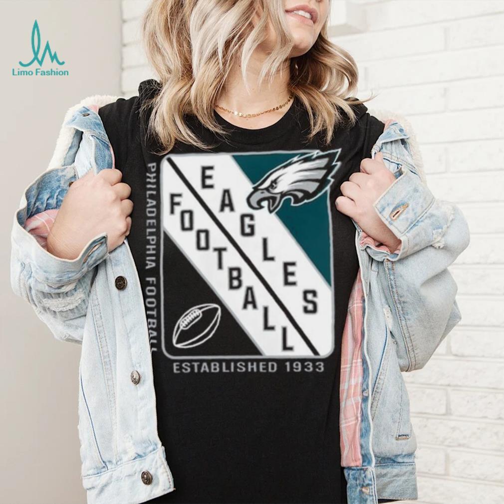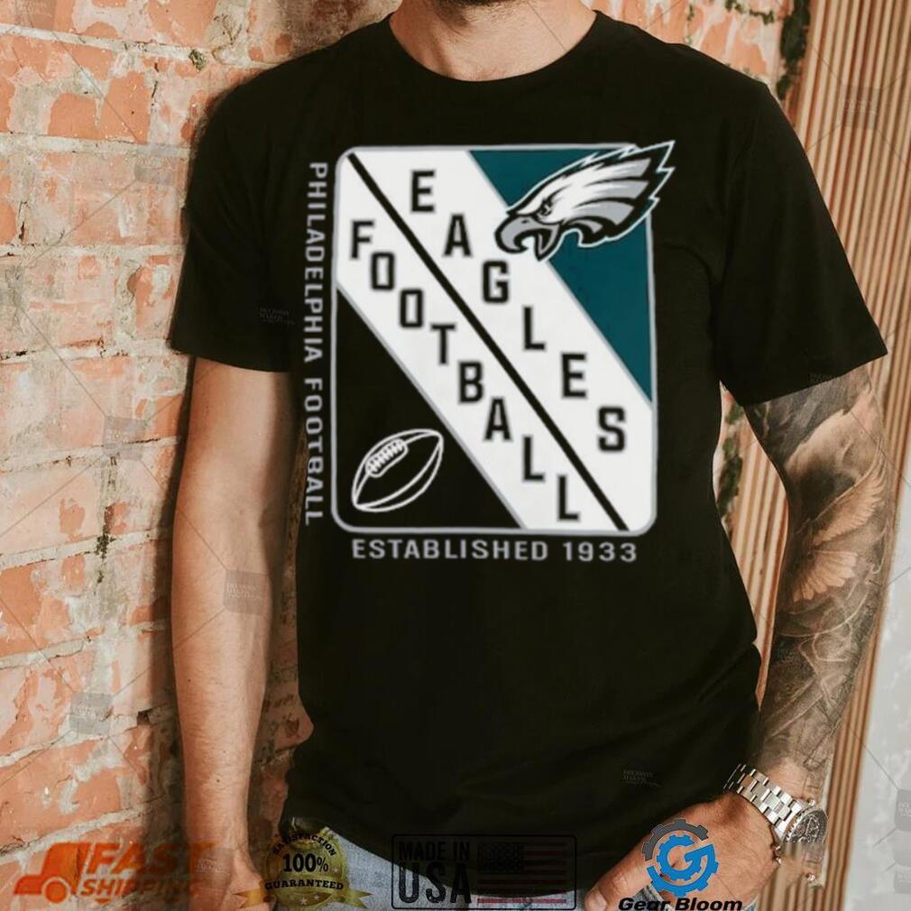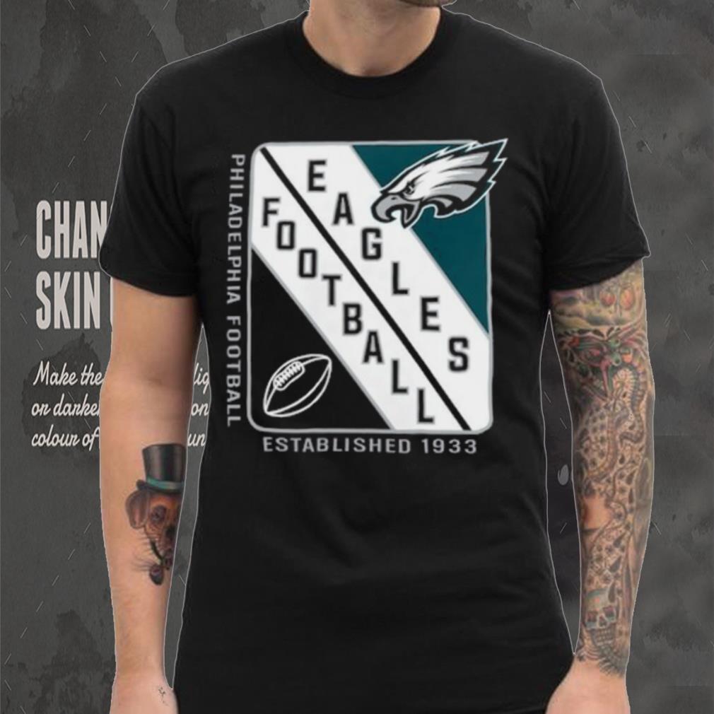 People strung cranberries and popcorn, starched little crocheted stars to hang, made paper chains and Men’s Starter Black Philadelphia Eagles Shield Graphic T Shirt had glass ornaments, usually from Germany, about two inches wide, they would get old and lose their shine. There was real metal tinsel too, that you could throw on with the argument about single strands and clumps. Each side had it’s followers. In the fifties various lights were a big deal, with bubble lights, that had bubbles in the candle portion that moved when plugged in. There were big primary colored lights strung around the tree too, nothing small or ‘tasteful’ Christmas trees were meant to be an explosion of color and light. I took Styrofoam balls and a type of ribbon that would stick to itself when wet, and wrapped the balls, and then used pins to attach sequins and pearls for a pretty design in the sixties. I also cut ‘pop-it’ beads meant for a necklace into dangling ornaments with a hook at the top to put it on the tree. Wrapped cut-up toilet paper tubes in bright wools too. Kids still remember making those.