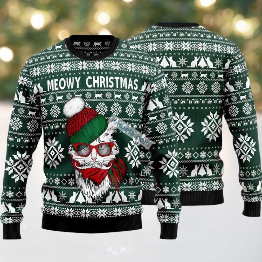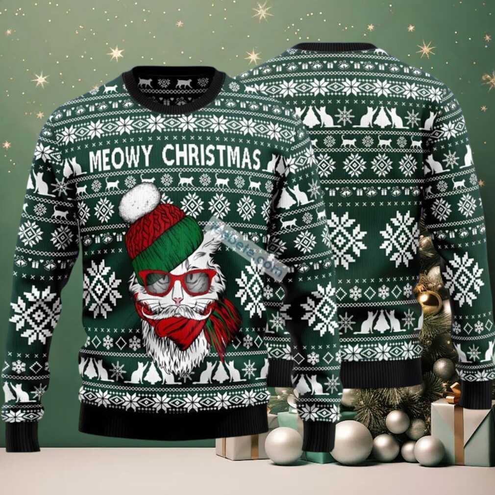 [Explore our collection of ethical holiday apparel] [Discover more funny Christmas sweatshirts]Prepare gifts for a wonderful Christmas season: Order your Meowy Christmas Face Ugly Christmas Sweater Green Cheap today and make a statement that’s both festive and kind!