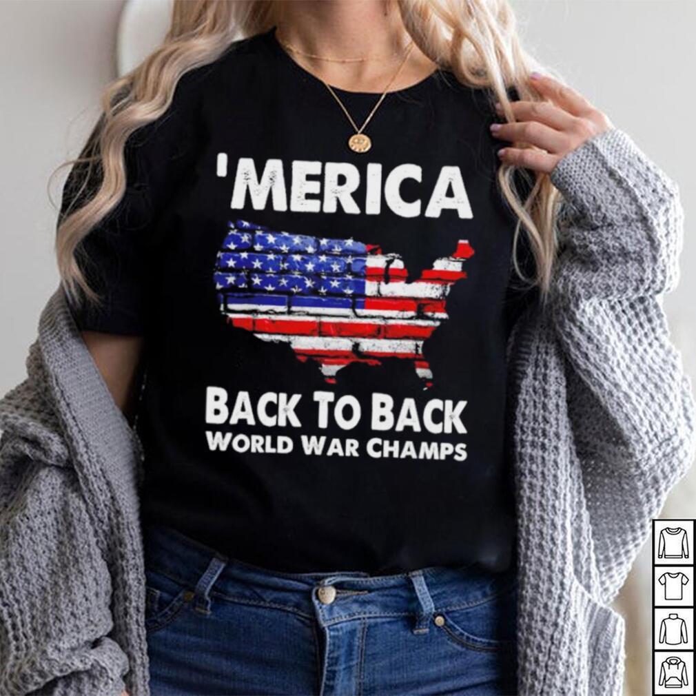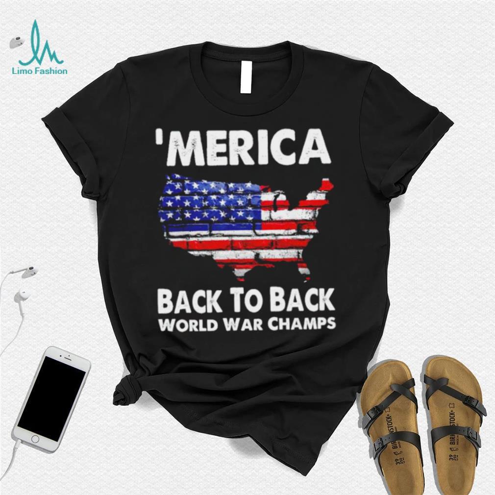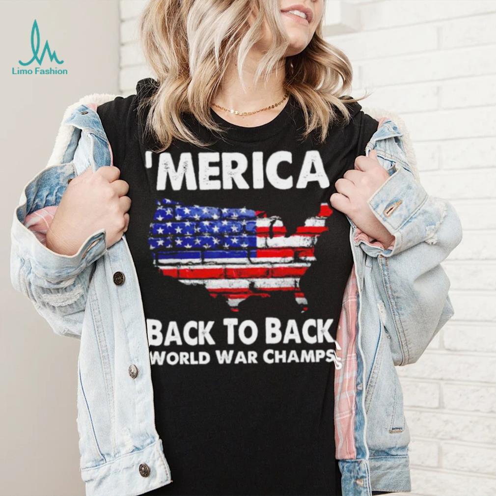 Geography. Pick the local team. If you are in say Miami, congratulations you can be a Dolphins fan and if you want to support teams across several levels, then the Dolphins for the NFL, Miami Hurricane among the power college programs and Florida International Panthers in the so-called Group of 5. If you are in an area not near an NFL team pick a ‘Merica back to back world war champs shirt college and could even find enjoyment following a small regional team that plays in Division II or III or Division I FCS. Aesthetic reasons. You like the dark blue and orange combo of the Denver Broncos then that can be your team (also opens up the Boise State Broncos in college football). I’m a Denver Broncos fan and Kansas City is a ‘Merica back to back world war champs shirt rival but I have to admit I like their home uniform. Like red and black? That gives you the Atlanta Falcons in the NFL, Texas Tech and Arkansas State and Cincinnati just off the top of my head. I don’t like the University of Texas but I happen to think their road uniform is one of the best in college football.