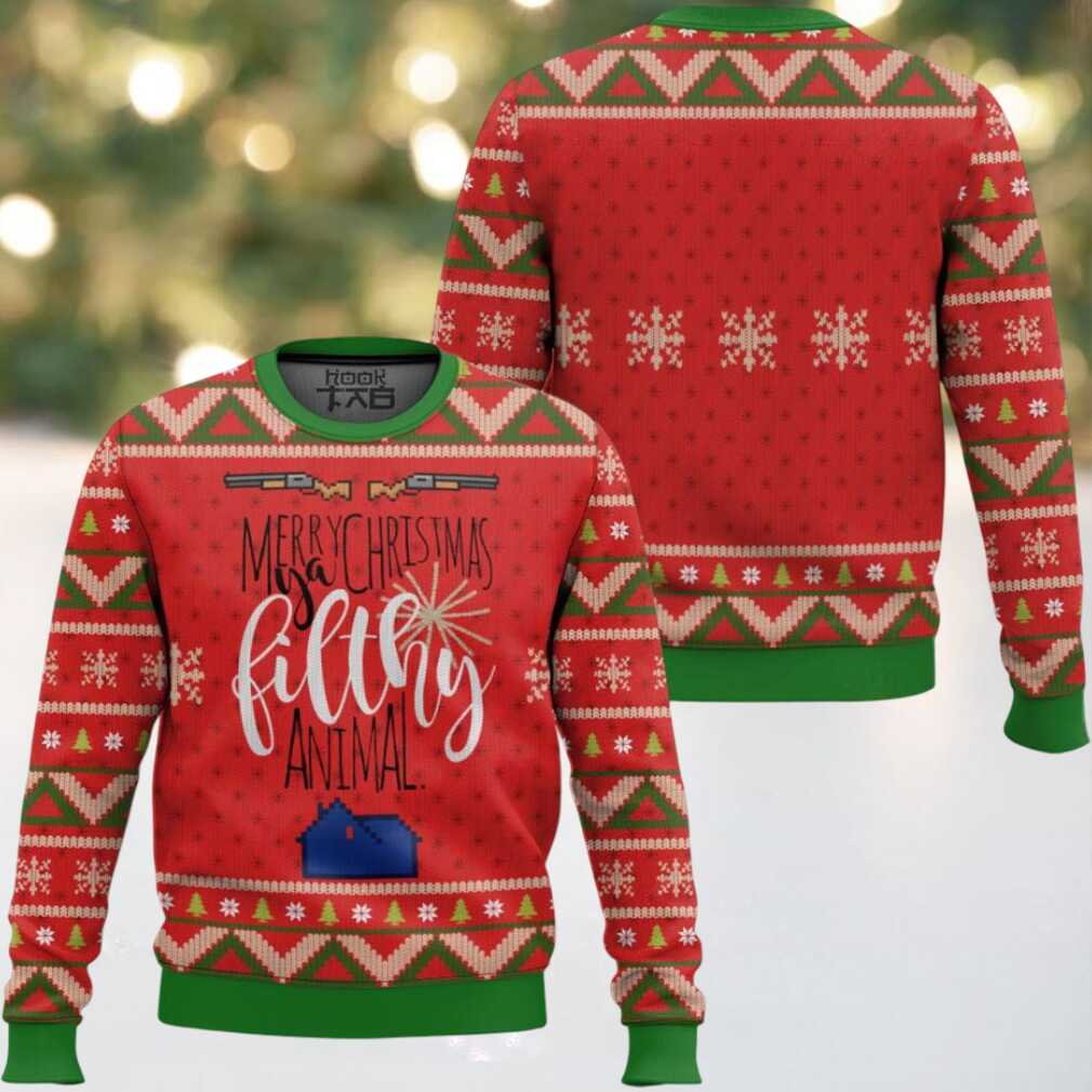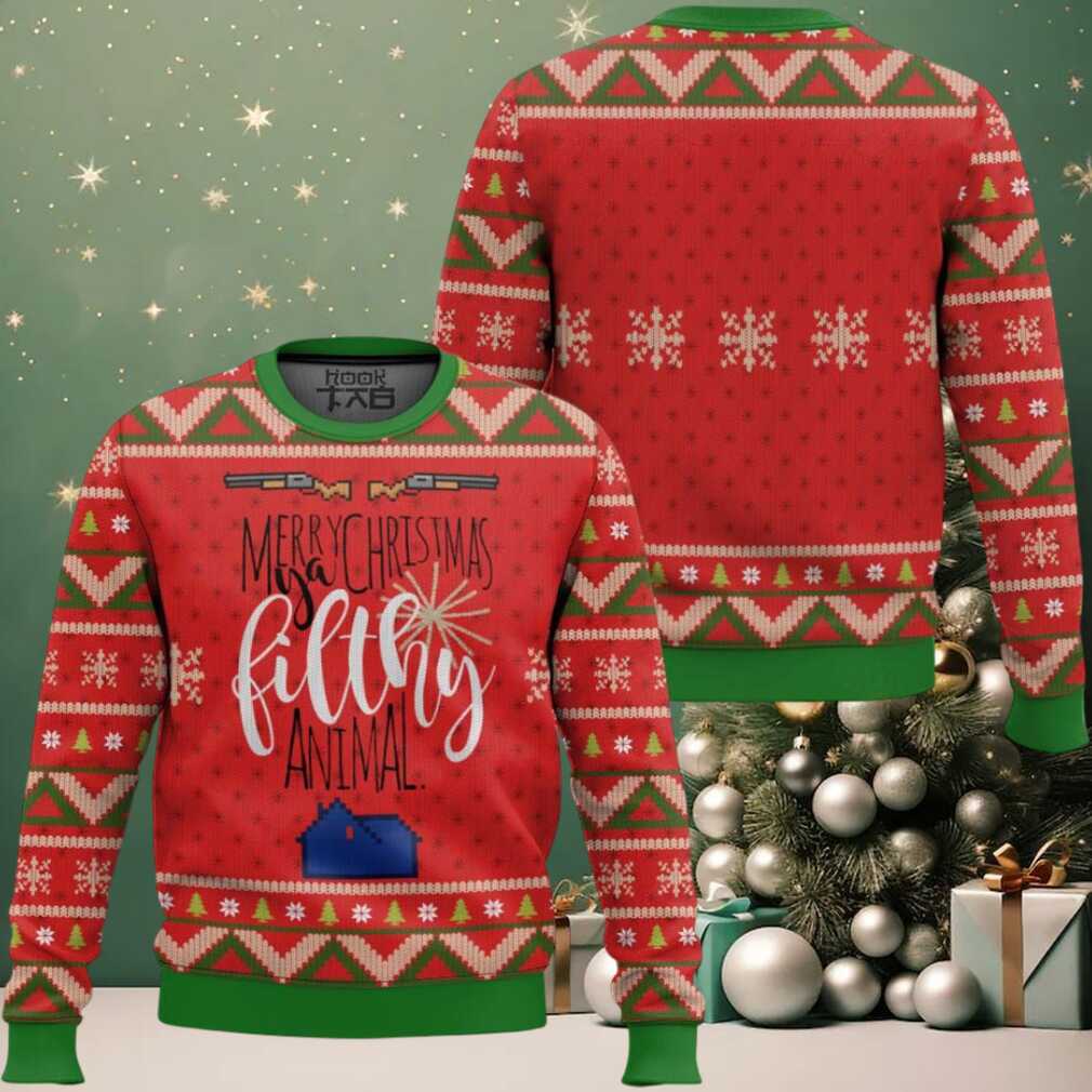 This "Merry Christmas Ya Filthy Animal Ugly Christmas Sweater" is an absolute must-have for fans of classic 90s Christmas movies, particularly the iconic film that gave us this memorable line. It’s the perfect garment for ugly Christmas sweater parties, movie marathons with family and friends, or simply as a comfortable statement piece for casual holiday outings. Imagine the smiles and knowing glances you’ll receive from fellow fans! It also makes an incredible, humorous gift for friends, family members, or colleagues who appreciate a witty, nostalgic touch to their festive wardrobe.