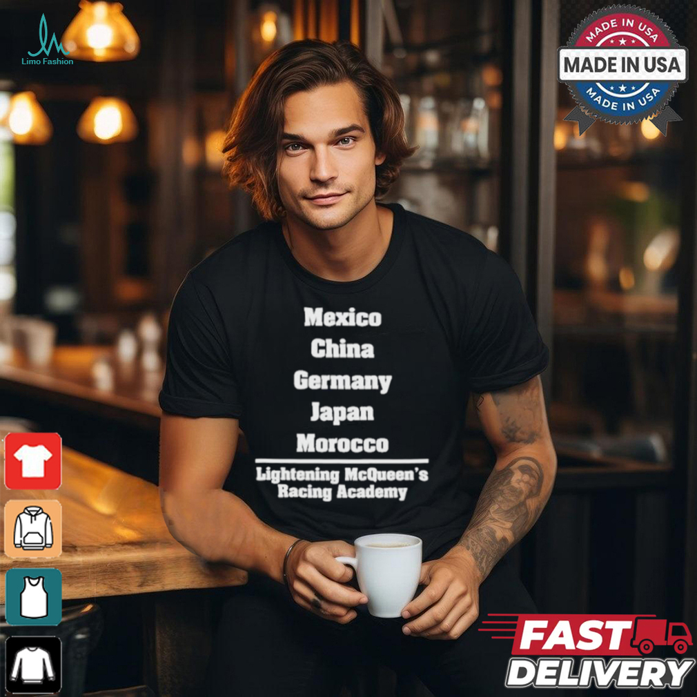 My suggestions are to Mexico China Germany Japan Morocco Lightning Mcqueen Racing Academy Shirt each girl to make both a written and a face to face apology that includes accepting her responsibility for what happened. Such as, “I’m sorry I cut your hair. It was wrong and I was wrong for doing this. Please forgive me for assaulting you while you were asleep. Then have each girl commit to paying the same amount, the amount it costs to have a nice hair style then put the excess money towards a charity helping children.