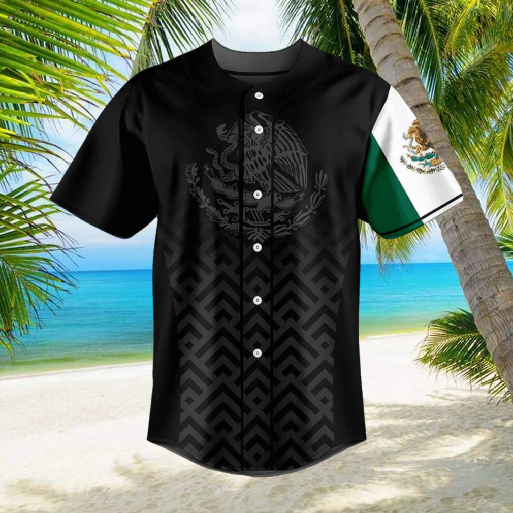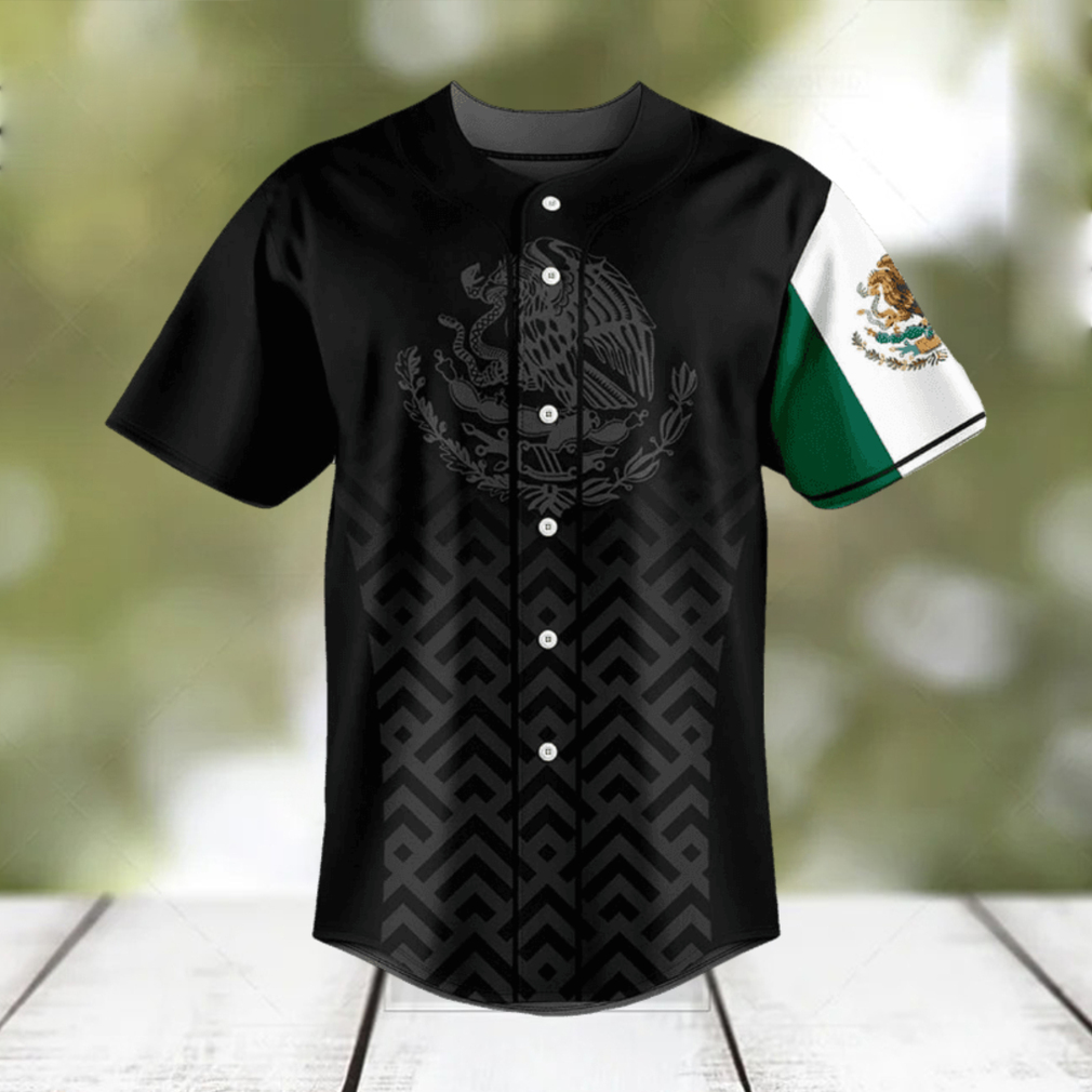 Best Mexico Coat Of Arms And Flag Black Pattern Baseball Jersey Shirt Gift For Men And Women