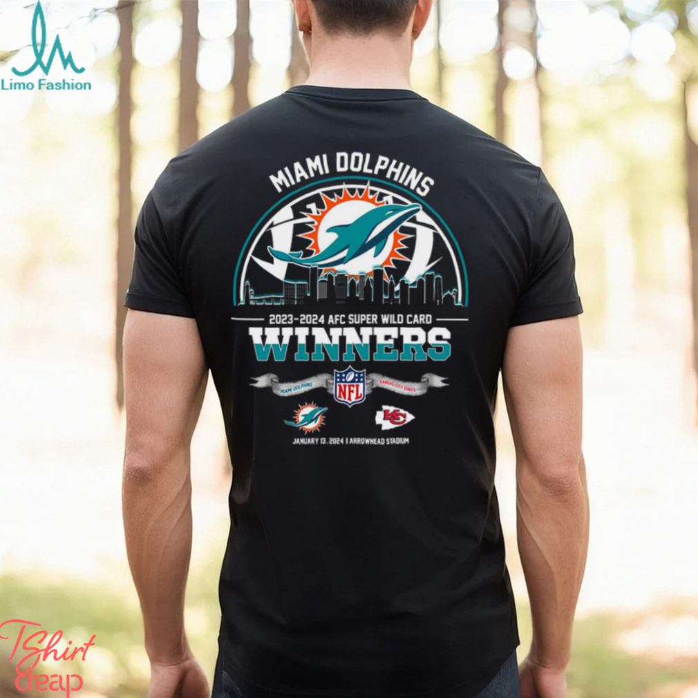 Miami Dolphins 2023 2024 AFC Super Wild Card Winners Skyline NFL Playoffs Divisional January 13 2024 At Arrowhead Stadium T Shirt hoodie, tank top, sweater and long sleeve t-shirt
