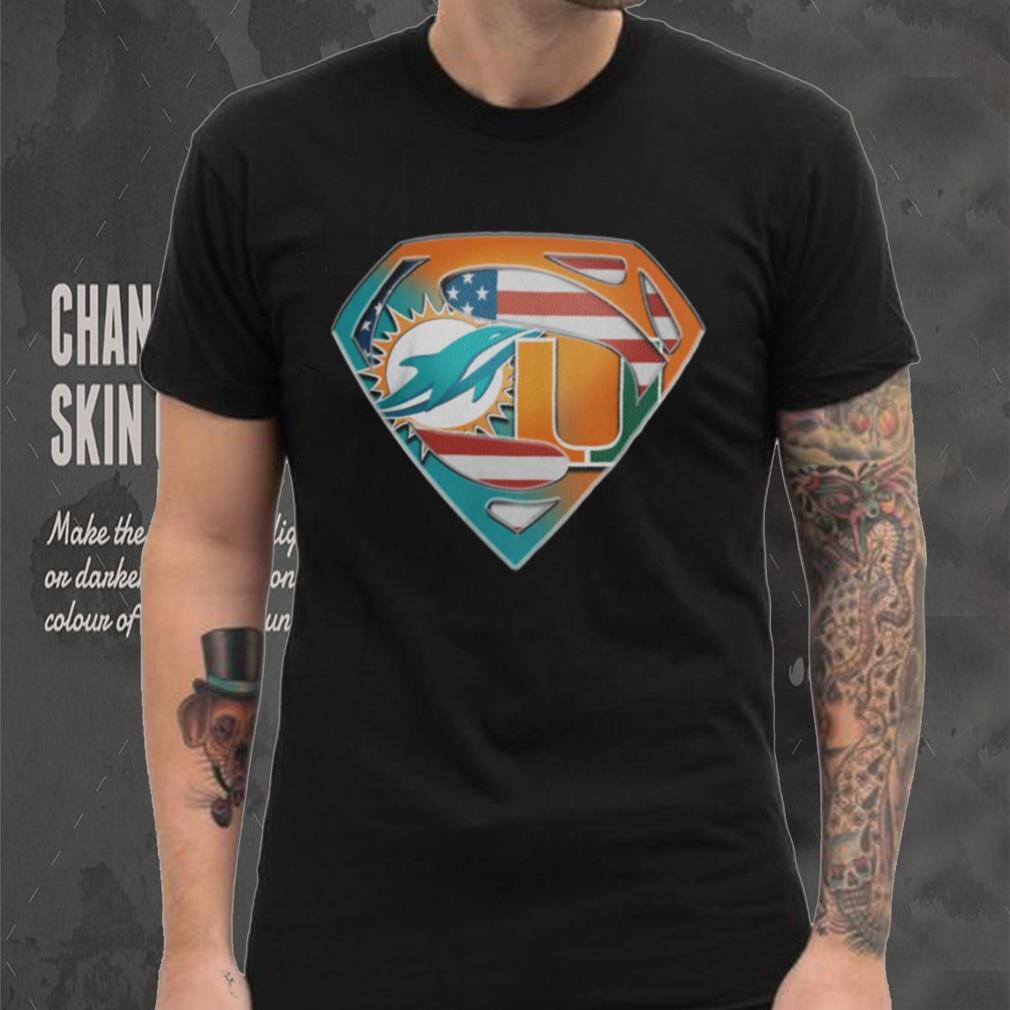 Miami Dolphins And Miami Hurricanes Superman Sports Logo Shirt