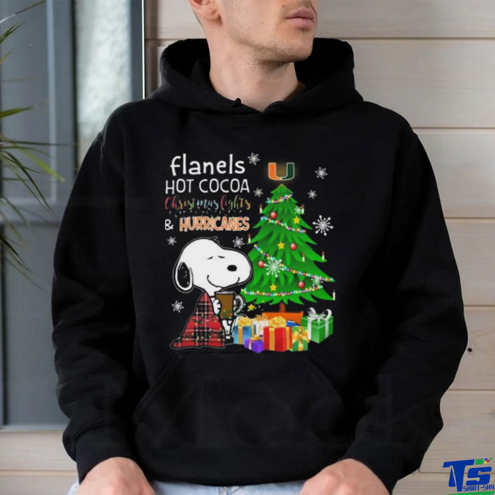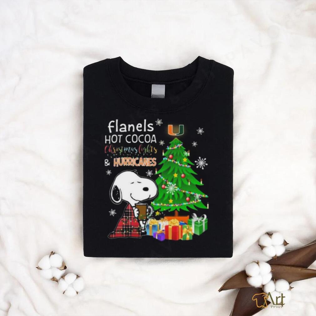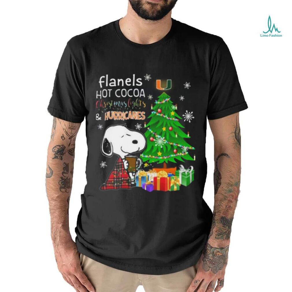 ()Miami Hurricanes Snoopy Flanels Hot Cocoa Christmas Lights Tree shirt, Hoodie, Sweater, Vneck, Unisex and T-shirt