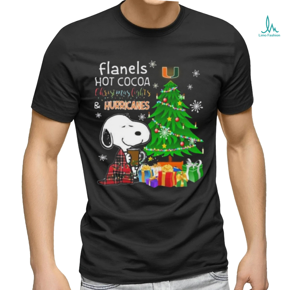 The current NHL leadership will only consent to moving one of the Miami Hurricanes Snoopy Flanels Hot Cocoa Christmas Lights Tree shirt teams as an absolute last resort. Winnipeg only got the Thrashers when the situation in Atlanta became untenable and the team needed a last-minute landing site. This is why the Centre Videotron was constructed in Quebec City: to have an NHL-ready arena if and when another team needs to relocate.The NHL insists that it is committed to keeping its current franchises where they are: this is true until it suddenly isn’t. There may come a point when a club like the Arizona Coyotes has no option but to relocate, and Quebec City could indeed wind up with a new version of the Nordiques.The league is bullish on Houston, which has a local NBA owner who is eager to become part of the NHL. So the Texas city is often considered the top candidate for a relocated franchise. But it is more likely that Houston would enter the league via an expansion franchise (Seattle paid $650M to join and the other owners will be wanting another cash injection in the future). Quebec would probably get the next team that needs to relocate.
