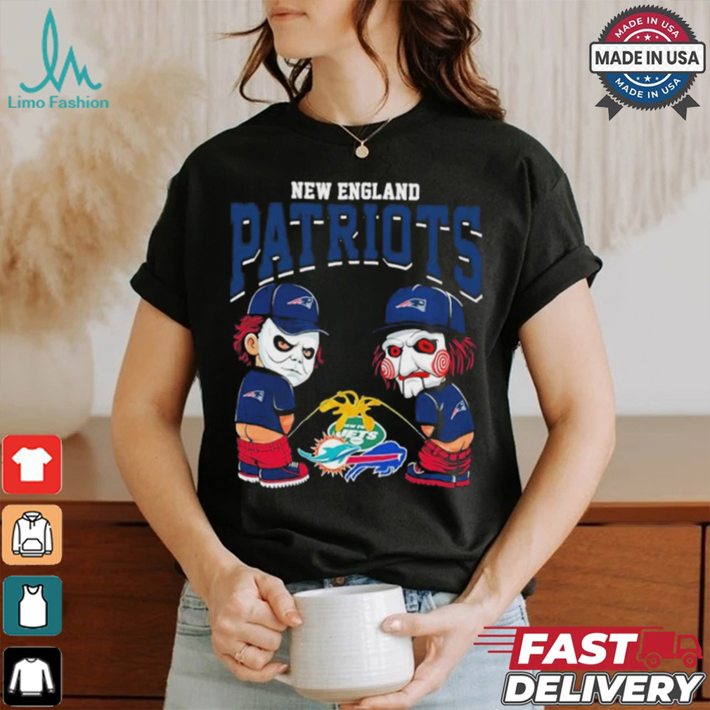Michael Myers And Billy The Puppet X New England Patriots Pee On NFL Teams Halloween Shirt. Categories of this T-shirt is teejeep, Michael Myers And Billy The Puppet X New England Patriots Pee On NFL Teams Halloween Shirt from Dadyshirt ✓ Unique designs ✓ Large assortment ✓ Comfortable ✓ High-quality ✓ Easy to care for ✓ Available in a range of colours and styles for men, women ✓ Shop now ✓