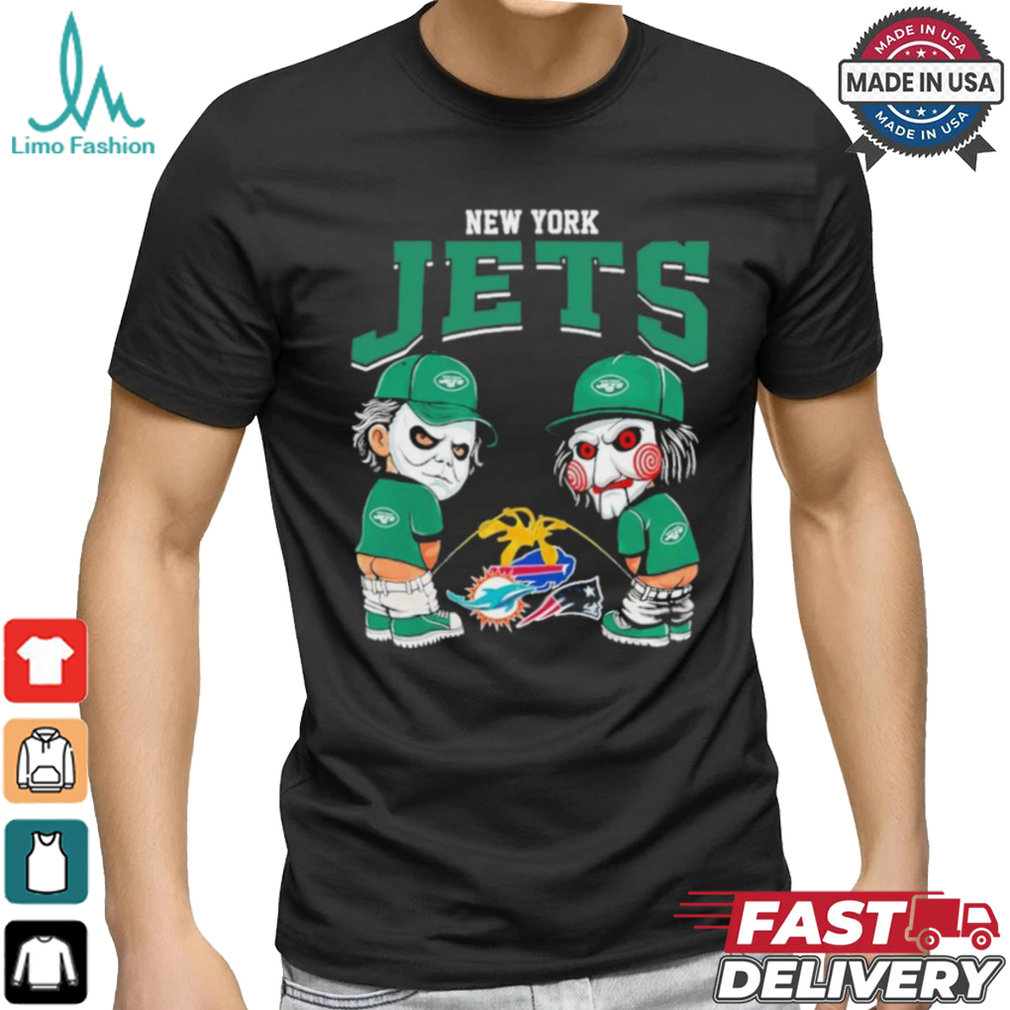 Michael Myers And Billy The Puppet X New York Jets Pee On NFL Teams Halloween Shirt. Categories of this T-shirt is teejeep, Michael Myers And Billy The Puppet X New York Jets Pee On NFL Teams Halloween Shirt from Dadyshirt ✓ Unique designs ✓ Large assortment ✓ Comfortable ✓ High-quality ✓ Easy to care for ✓ Available in a range of colours and styles for men, women ✓ Shop now ✓