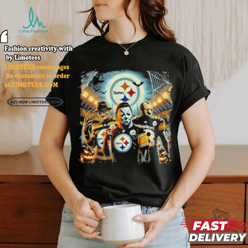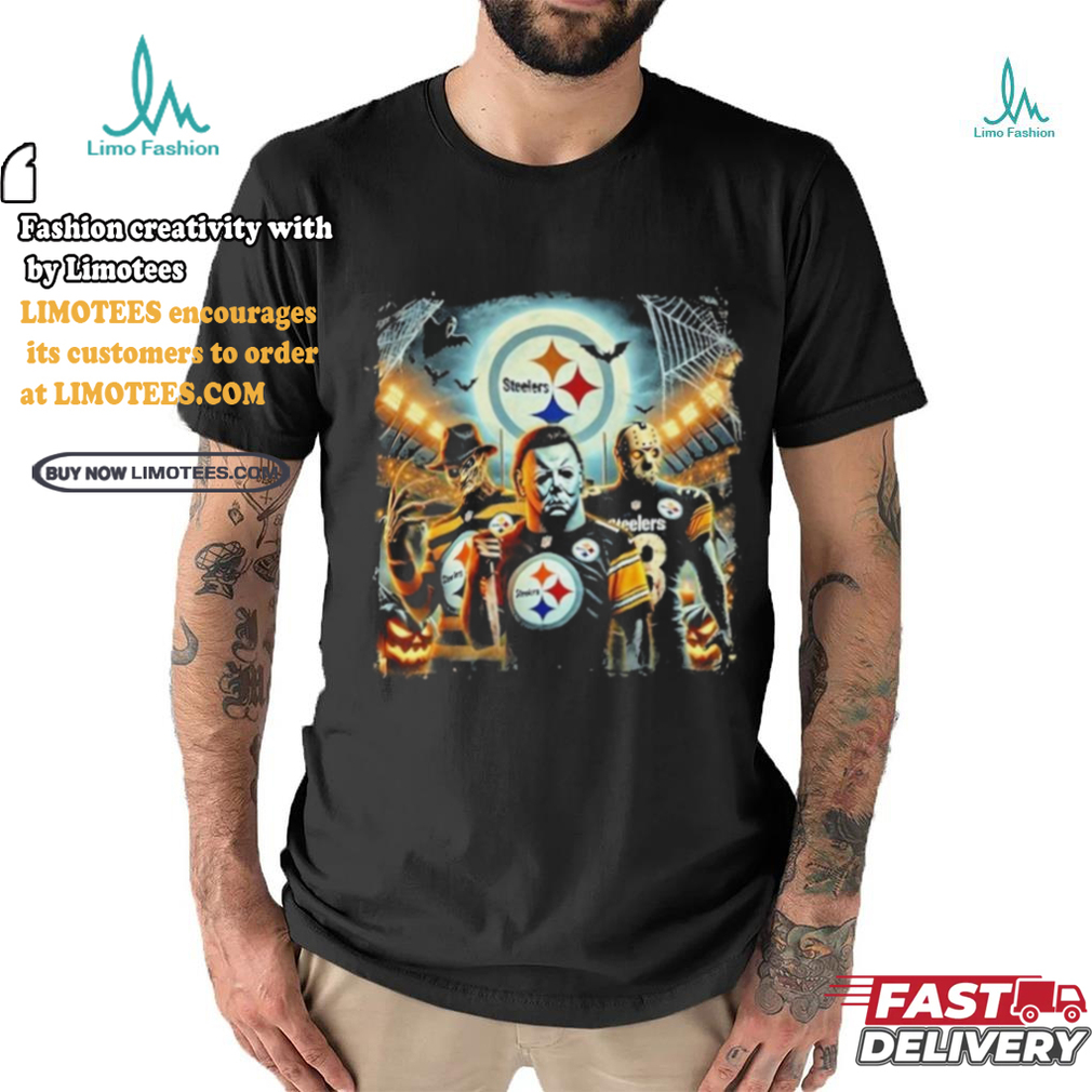()Michael Myers Jason Voorhees Freddy Krueger Pittsburgh Steelers Halloween Shirt. Categories of this T-shirt is teejeep, Michael Myers Jason Voorhees Freddy Krueger Pittsburgh Steelers Halloween Shirt from Dadyshirt ✓ Unique designs ✓ Large assortment ✓ Comfortable ✓ High-quality ✓ Easy to care for ✓ Available in a range of colours and styles for men, women ✓ Shop now ✓