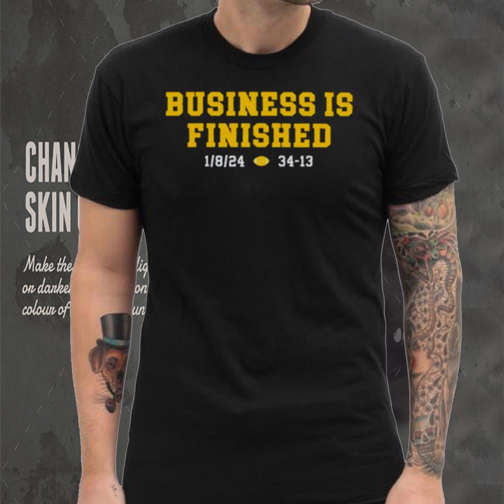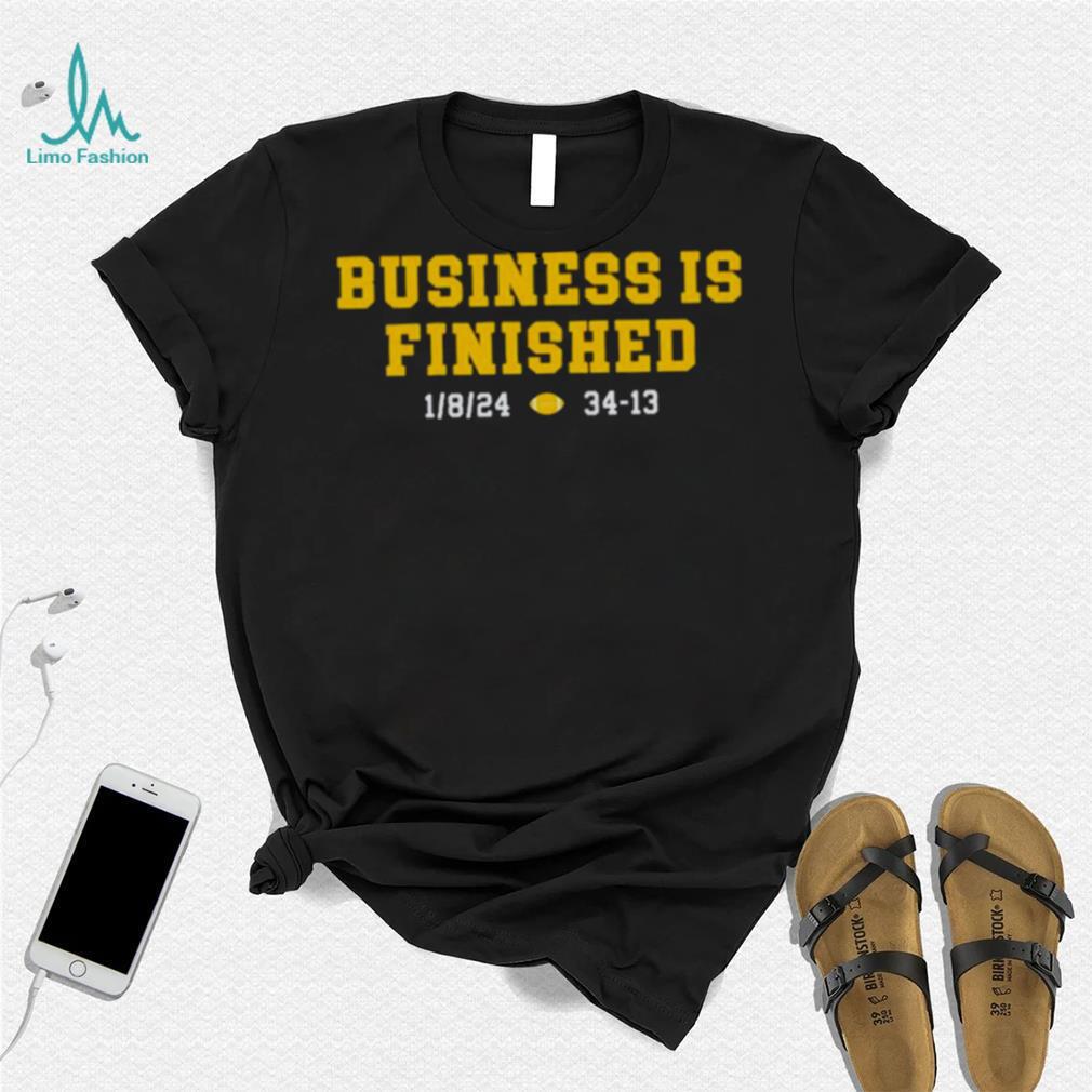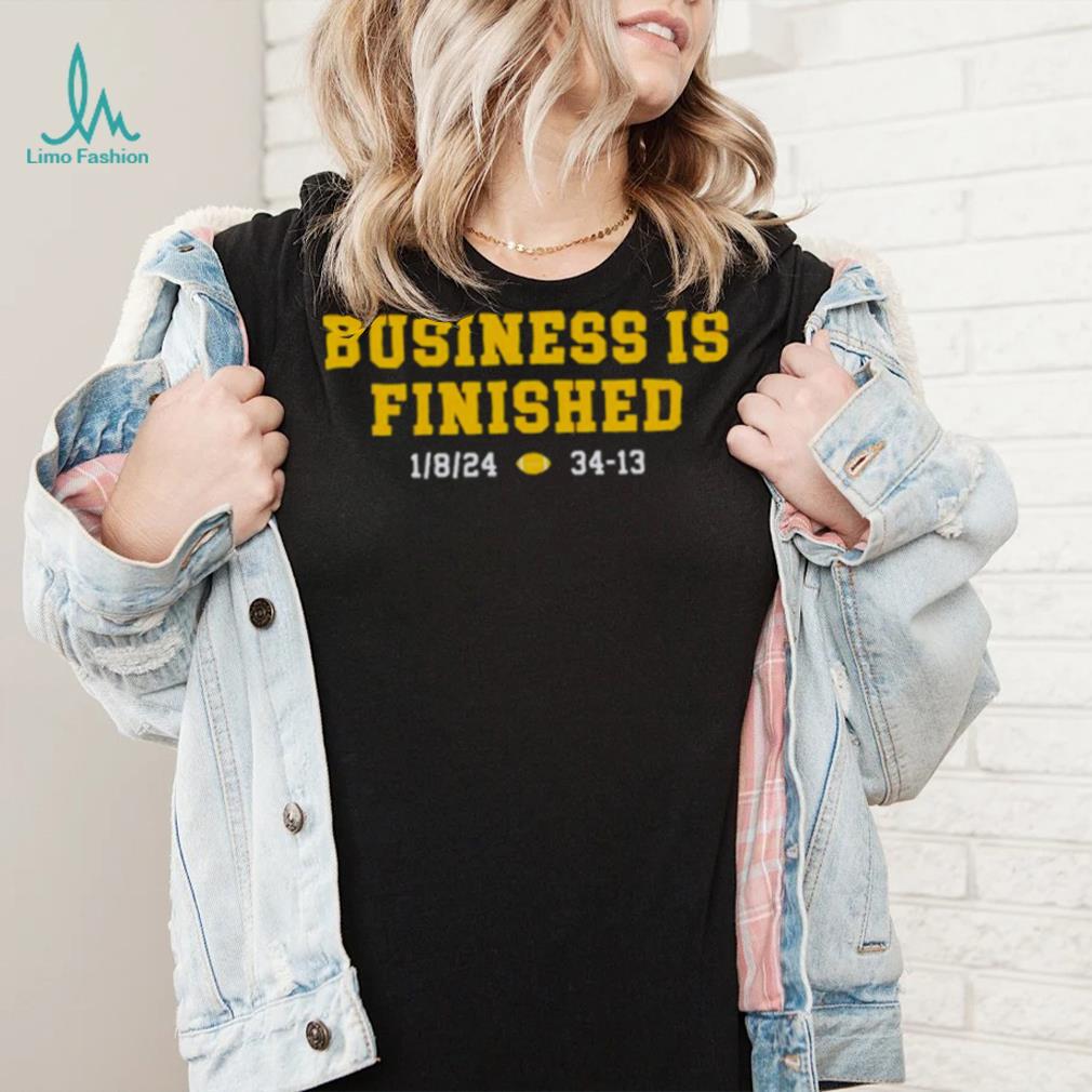Its increasingly harder to get the NFL to commit to what a CATCH actually is (a TD in Chicago can be called a non catch in Seattle, even though the same exact type of Michigan Football Business Is Finished Shirt catch was made). The main reason for this, the NFL does not hire FULL TIME officials. These are men (and now women) with other jobs that while they are fully trained, do not do this full time as their main work. Further more, NFL officials work together as teams during the regular season. The Playoffs for Referees is just like for the rest of the NFL..the best of the best get to join in. That means you have Line Judges from one team mixed with Referees from another team, because those two people graded the highest during the season, and their reward is.. to ref the playoffs…and Super Bowl. A lot can be said about team chemistry, and how well a Michigan Football Business Is Finished Shirt team works together. Well keep that in the Officiating too please NFL. Pick the best TEAMS and keep them together in the NFL.