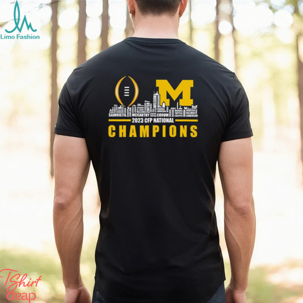 For us, it is Christmas Eve. There are just two of Michigan Wolverines 2023 CFP National Champions City Skyline Players Name Shirt, as we have no children. When we were first married, we always went to my parents’ house on Christmas Day. All of us (my parents, me, my husband, brothers, SIL, nieces, nephew) would open our gifts and then have a Christmas dinner. My husband and I started a tradition of having a Christmas Eve dinner together, just the two of us, and exchanging our gifts to each other after dinner. After a couple of years, we switched from a Baptist church to a Methodist church that has a Christmas Eve service (the Baptist church never had a service on Christmas Eve or Christmas Day unless one of those days happened to be Sunday). The pattern for Christmas Eve then became church, dinner, gifts (and, for some years, a second late evening church service). Meanwhile, my mother finally had to admit pulling off a Christmas dinner was too much, and we went to finger foods or sandwiches. Then she decided that getting everything wrapped and ready by the 25th was too hard, and my brother and his family kept arriving later and later every year because they would spend the afternoon at her mother’s house 120 miles away, so the family Christmas get-together got moved to the Saturday after Christmas, then to the Saturday after New Year’s, then to the second Saturday in January. Christmas Day itself became a non-event. We still keep our tradition of having our dinner and gift exchange on Christmas Eve, and of course, the church service is still that evening as well. Christmas Day is now just a nice day off from work to relax.