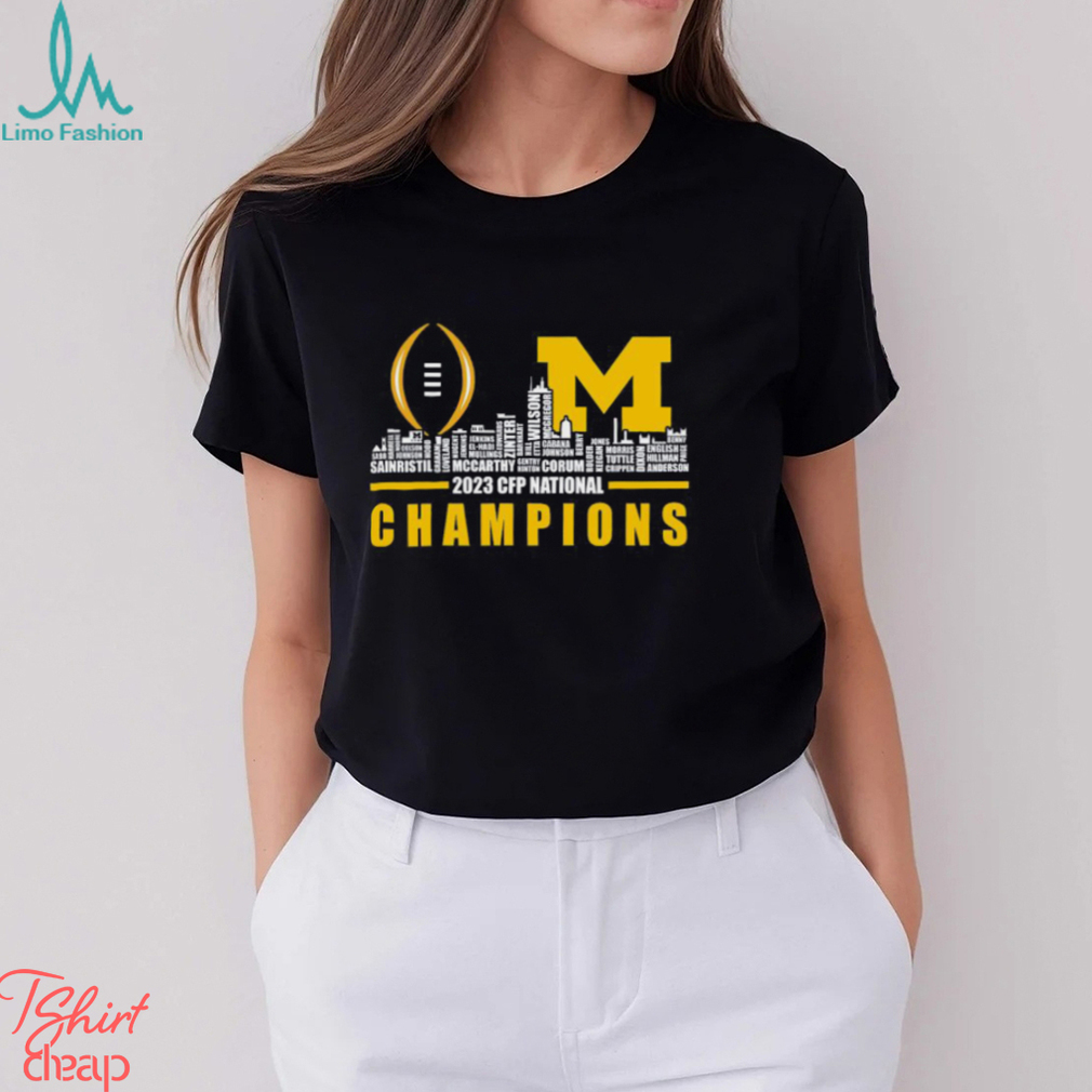 Michigan Wolverines 2023 CFP National Champions City Skyline Players Name Shirt