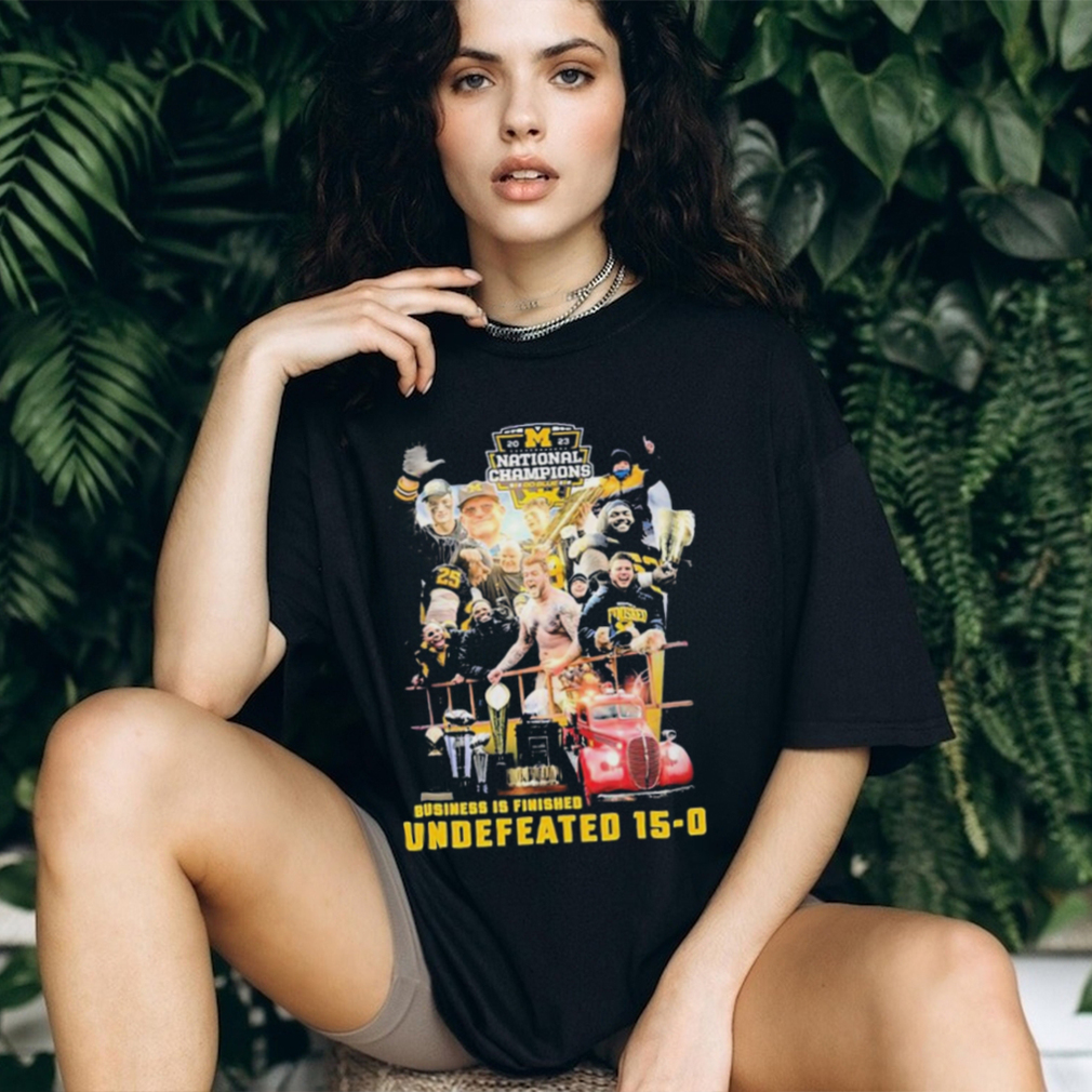 Michigan Wolverines 2023 National Champions Business Is Finished Undefeated 15 0 Shirt. Categories of this T-shirt is teejeep, Michigan Wolverines 2023 National Champions Business Is Finished Undefeated 15 0 Shirt from Dadyshirt ✓ Unique designs ✓ Large assortment ✓ Comfortable ✓ High-quality ✓ Easy to care for ✓ Available in a range of colours and styles for men, women ✓ Shop now ✓