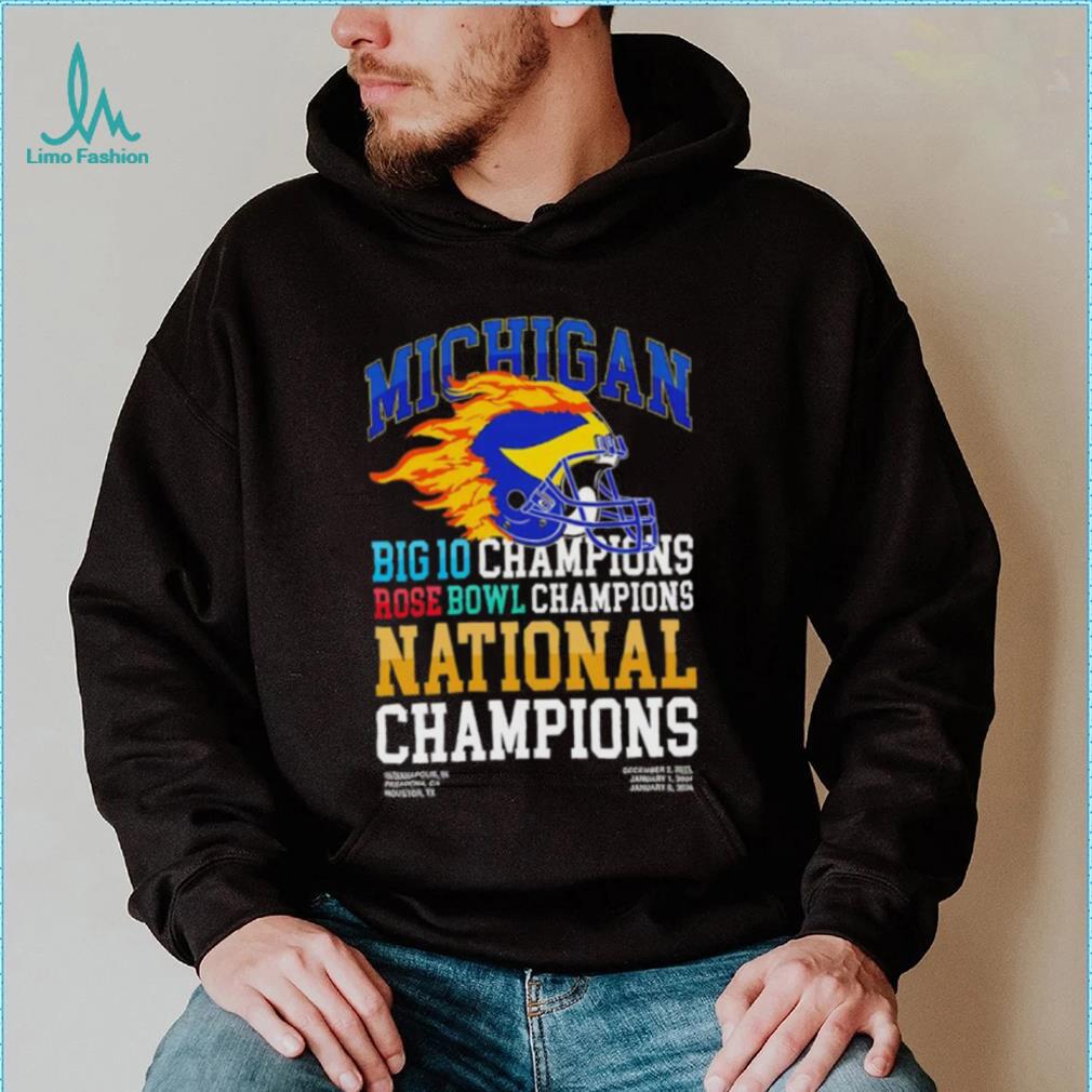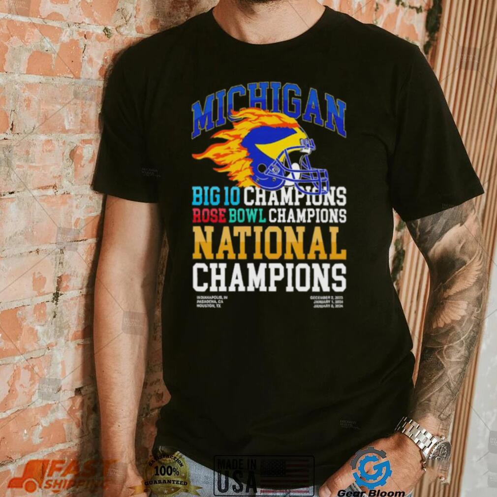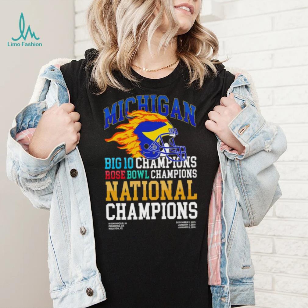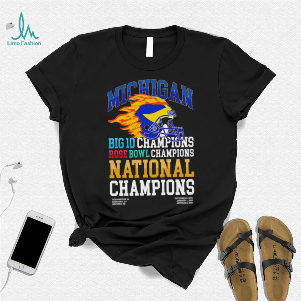 Michigan Wolverines big 10 champions rose bowl champions national champions fire helmet shirt