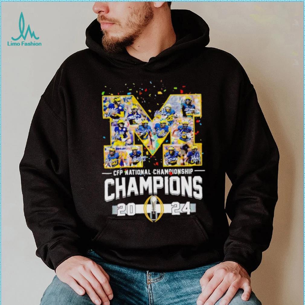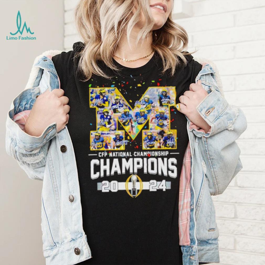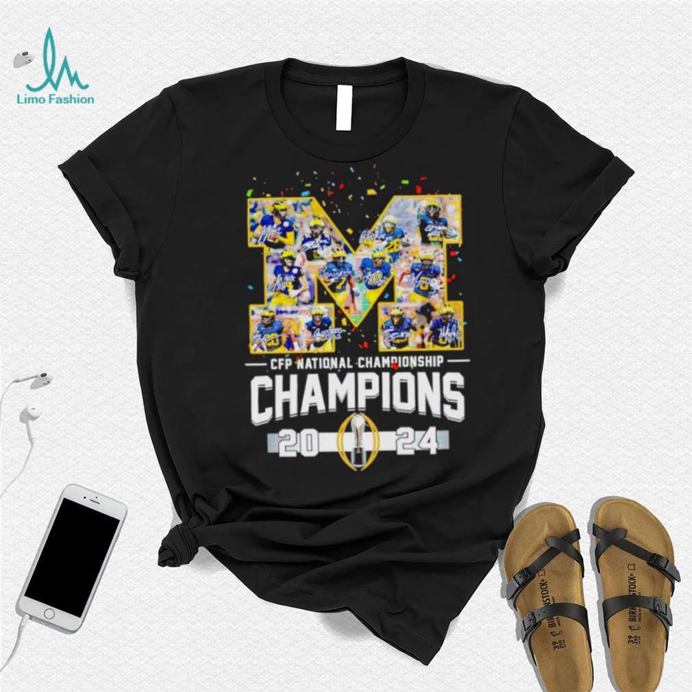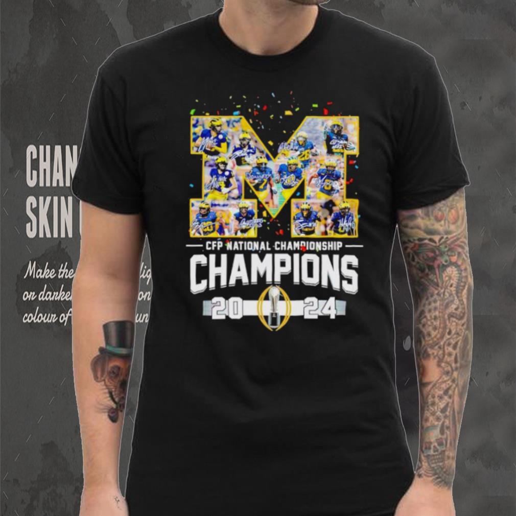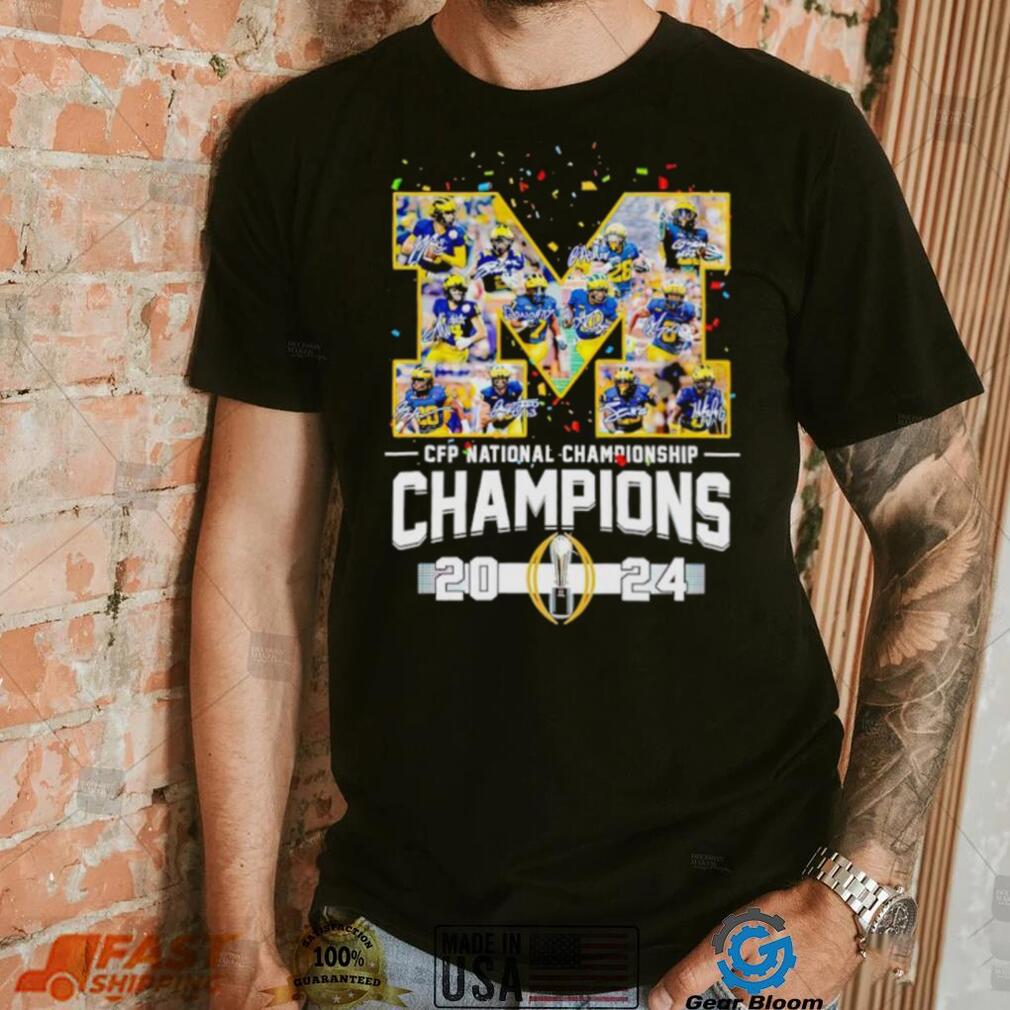 ()Michigan Wolverines big logo CFP National Championship Champions 2024 signatures shirt