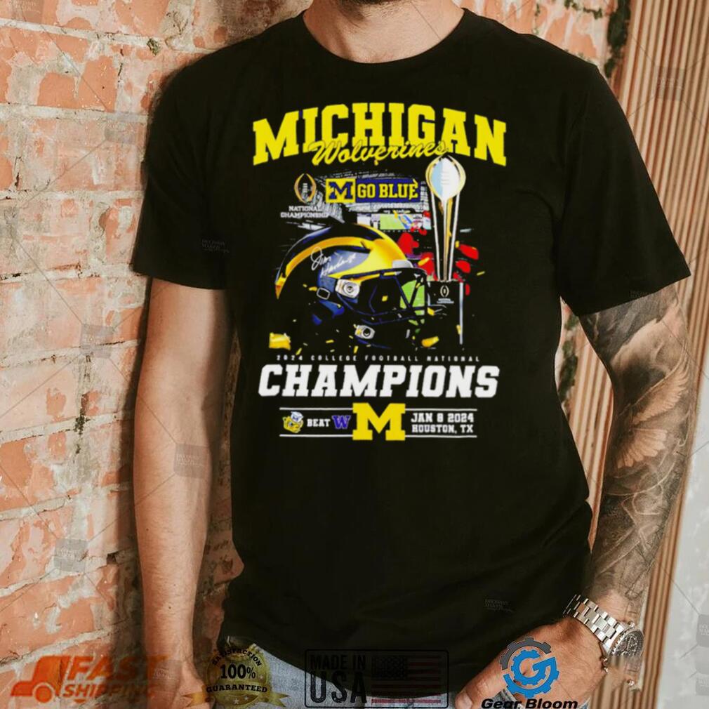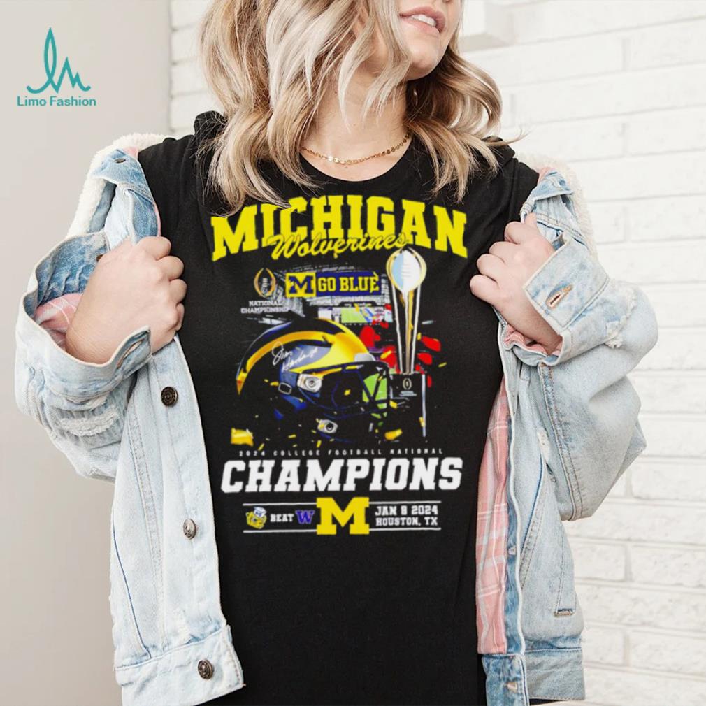 Michigan Wolverines go blue 2024 College football National Champions helmet logos shirt