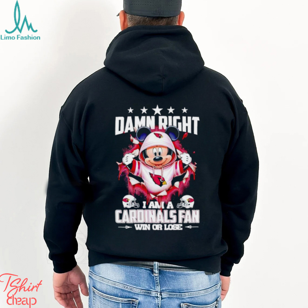 Mickey mouse damn right I am a Arizona Cardinals fan win or lose shirt hoodie, tank top, sweater and long sleeve t-shirt