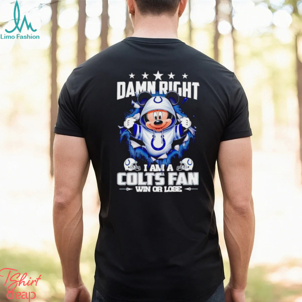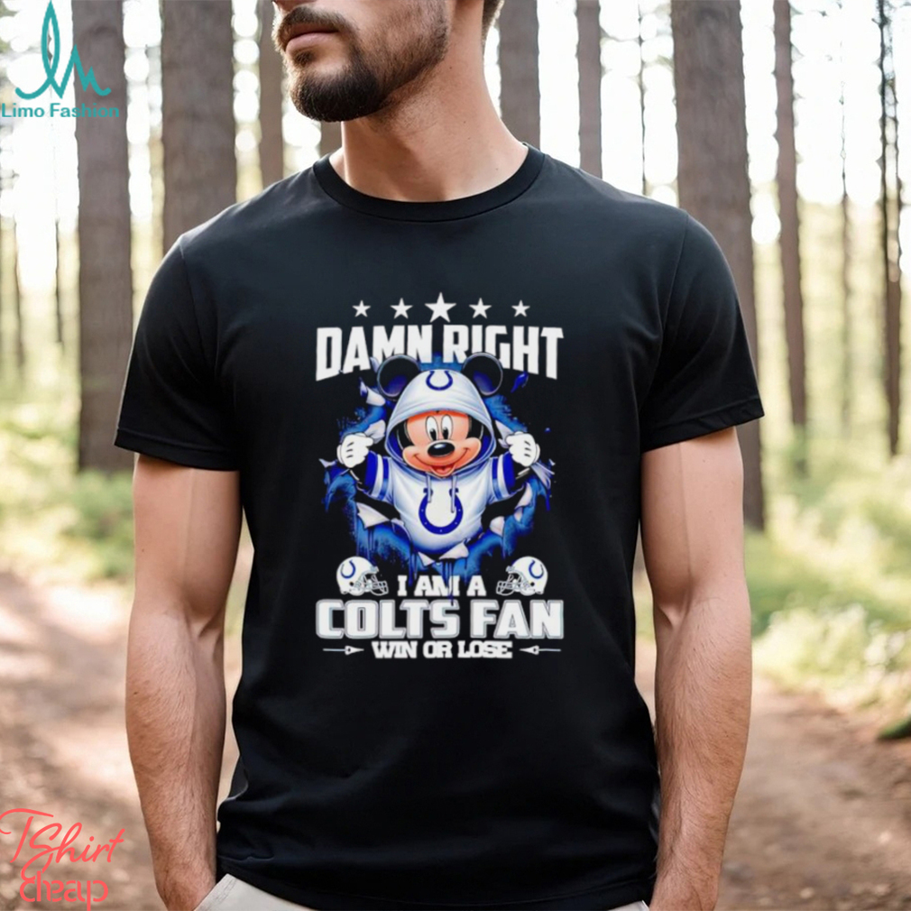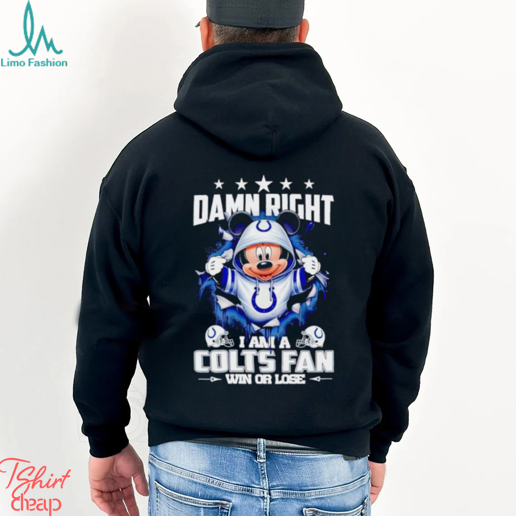 ()Mickey mouse damn right I am a Indianapolis Colts fan win or lose shirt hoodie, tank top, sweater and long sleeve t-shirt