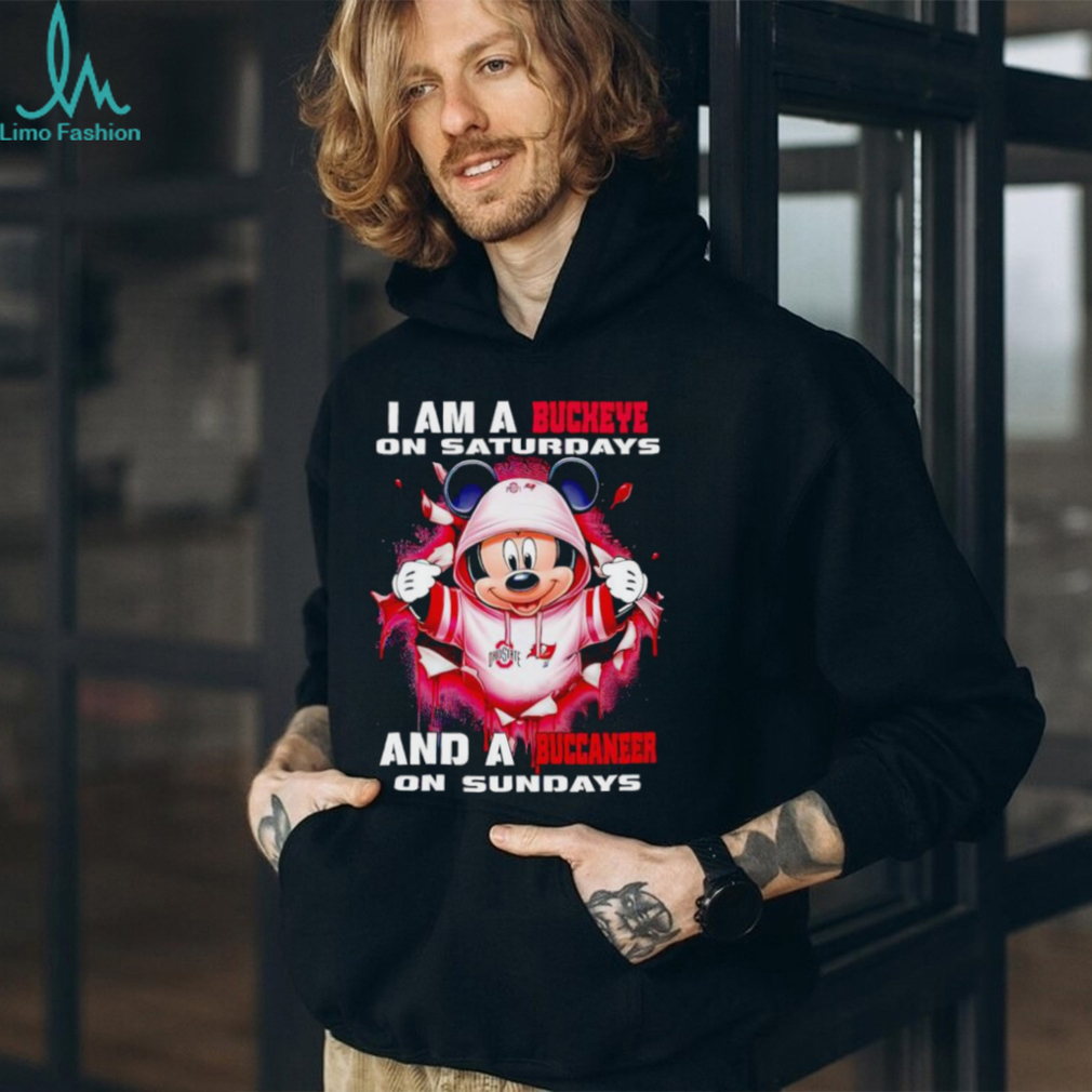 Mickey Mouse I am a Buckeye on Saturdays and a Buccaneer on Sundays shirt. Categories of this T-shirt is teejeep, Mickey Mouse I am a Buckeye on Saturdays and a Buccaneer on Sundays shirt from Dadyshirt ✓ Unique designs ✓ Large assortment ✓ Comfortable ✓ High-quality ✓ Easy to care for ✓ Available in a range of colours and styles for men, women ✓ Shop now ✓