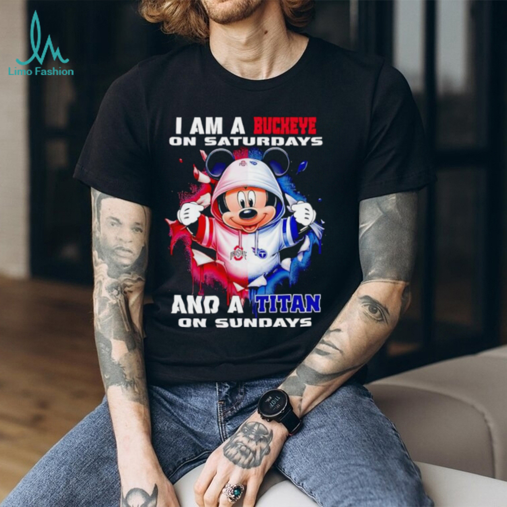 Mickey Mouse I am a Buckeye on Saturdays and a Titan on Sundays shirt. Categories of this T-shirt is teejeep, Mickey Mouse I am a Buckeye on Saturdays and a Titan on Sundays shirt from Dadyshirt ✓ Unique designs ✓ Large assortment ✓ Comfortable ✓ High-quality ✓ Easy to care for ✓ Available in a range of colours and styles for men, women ✓ Shop now ✓