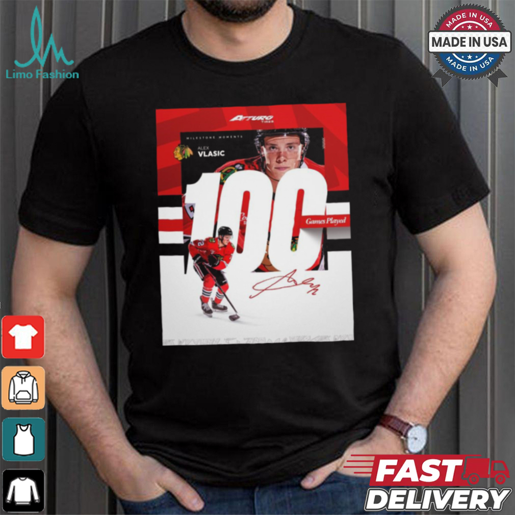 Milestone Moments Alex Vlasic Chicago Blackhawks 100 Game Played Signature Poster t shirt