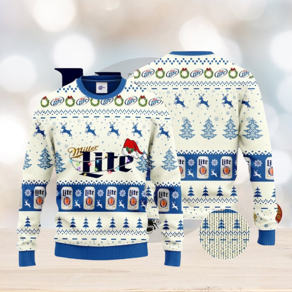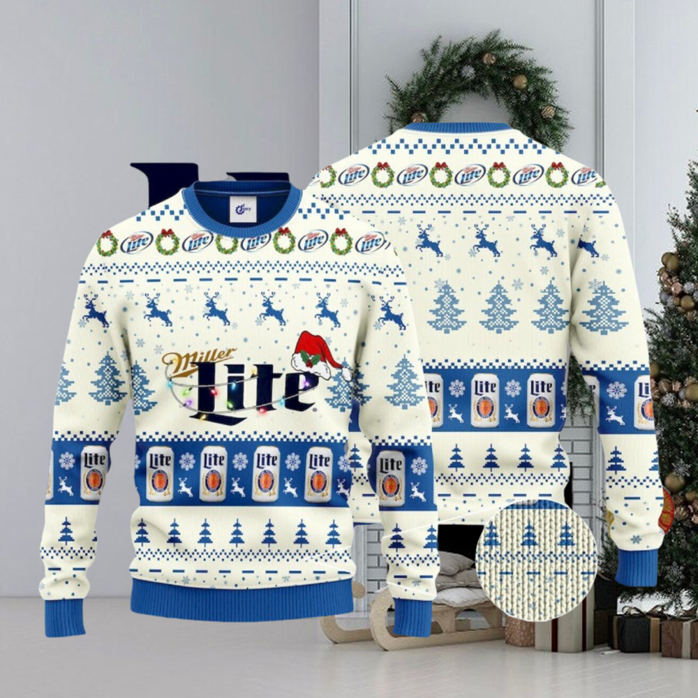 ()Miller Lite Santa Hat Christmas Ugly Christmas Sweater, Ugly Sweater Apparel,