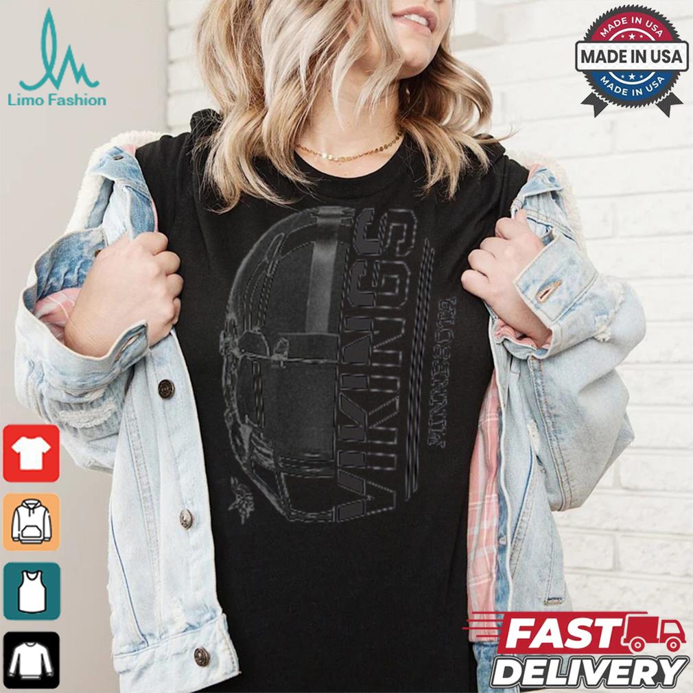 It’s a Minnesota Vikings Half Helmet Logo T Shirt kid’s movie that adults can enjoy. The only bad language is done in a cutesy way, with unintelligible sounds, kind of like the adults always talked in Peanuts cartoons. Ralph gets his mouth washed out with soap for it. The only violence is a scene where Ralph, while being picked on by a bully, snaps and fights back. It isn’t overly violent, and it isn’t glorified fighting, it’s just a couple of kids fighting in the snow like kids do. Ralph is crying throughout, so it is not some kind of ‘Aha, the victim has turned the tables with violence!’ I think the only other scene of violence is where Ralph fantasizes that he defends the house from burglars in the backyard with a BB gun. The scene is in black and white and sped up like a funny silent movie, and the burglars wear comical, old timey burglar outfits – striped shirt and black masks, like the Hamburglar. I think Ralphie shoots them in the butt as they try to climb back over the fence to get away.