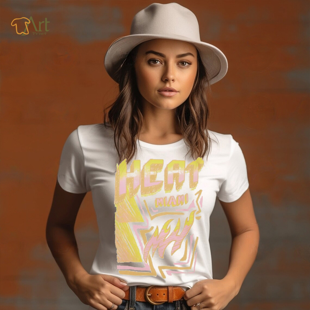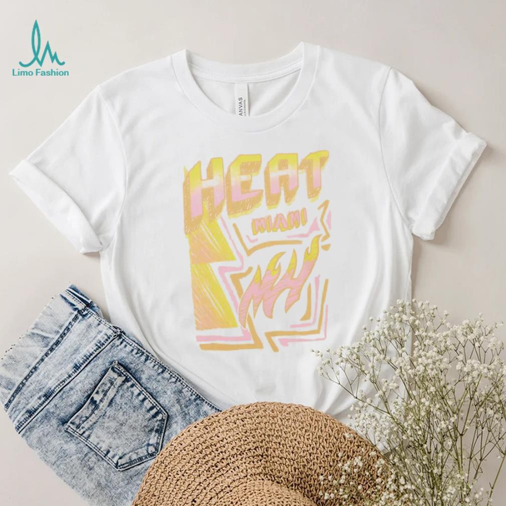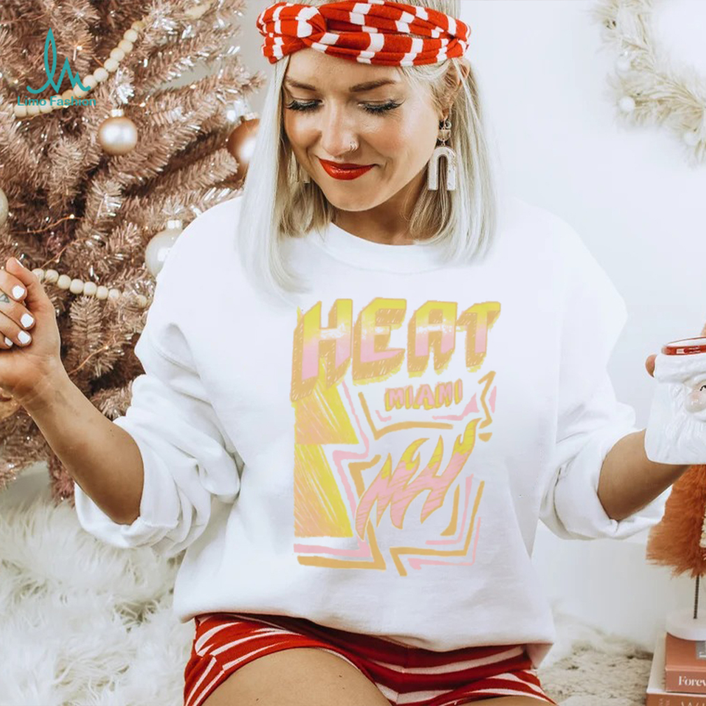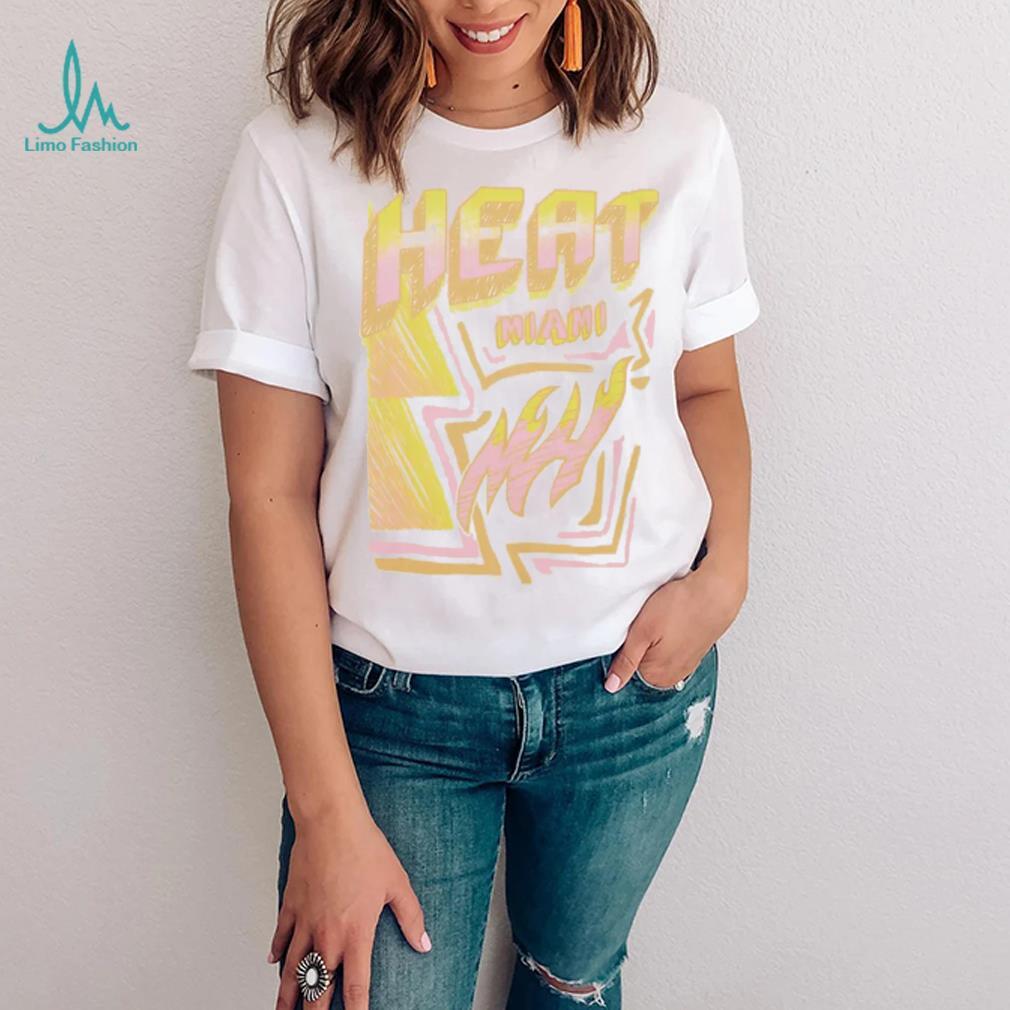 Around 11 AM, the Mitchell and Ness Miami Heat Off White Sidewalk Sketch T Shirt arrived. Several large, police officers approached us. They told us that they were going to shut down the operation as it was causing a huge traffic jam. I got a brainstorm, I asked the officer that appeared to be in charge if I could have a word with him (Note, I was in my hippie mode at this time). He agreed. I said, “These trees are free to anyone.” He said, “So what” I said “there are free to anyone, including the police department. You could pick up as many of the trees as you want and take them down to Watts (a very poor part of town) and give them away. Think of the PR you could get out of that.” The lights went on in his head and he turn around and talked to the other officers. I do not know what he said, but in a very short time, there were a lot more officers, but they were now directing traffic. Soon a large truck from the police department pulled up and they starting filling the truck with tress. They were already sending in an advance unit to prepare for the Christmas tree give away.