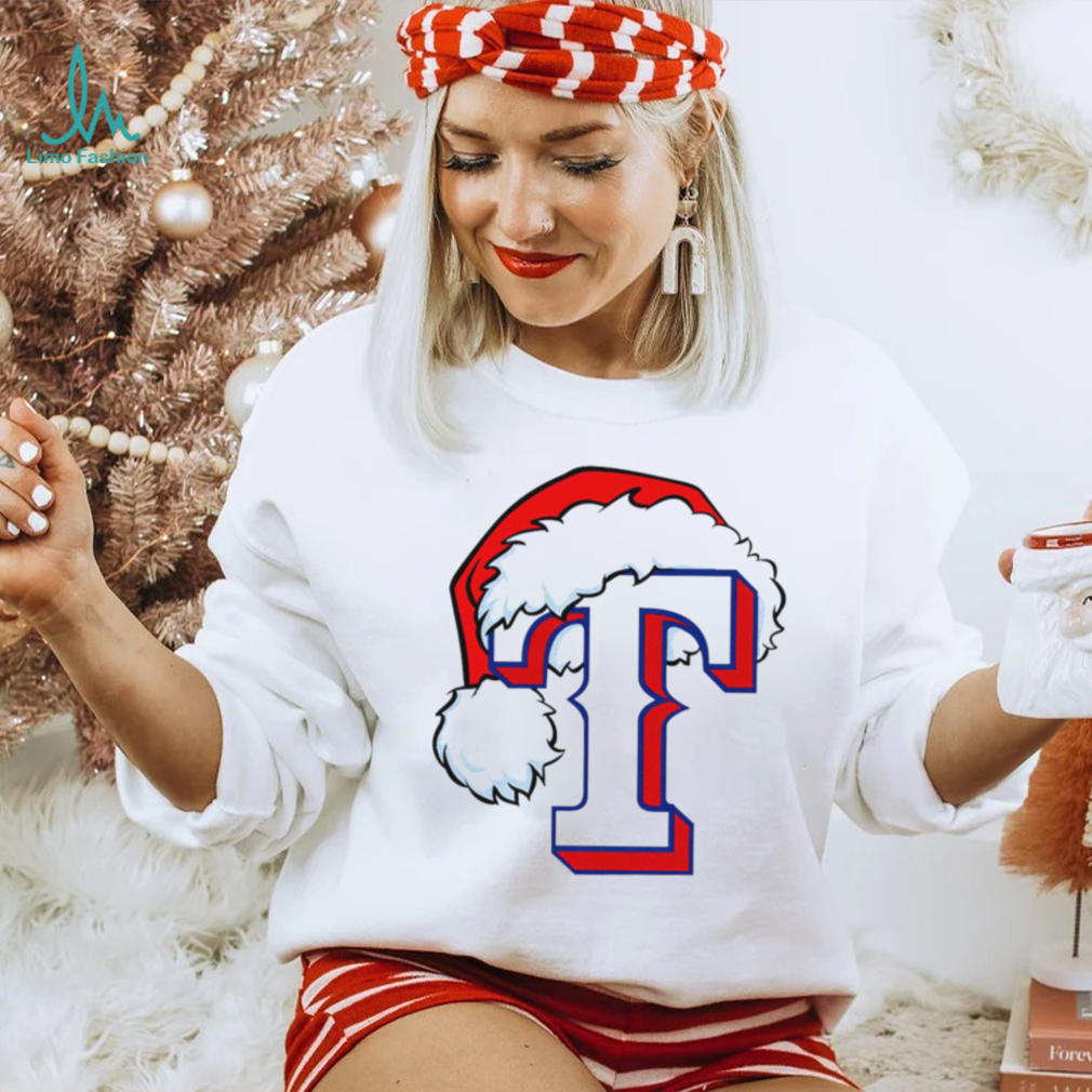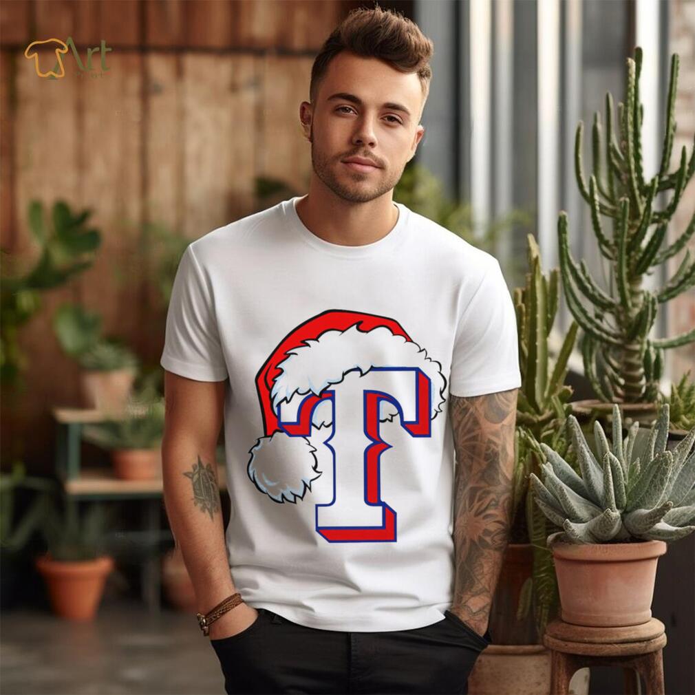 MLB Texas Rangers baseball Santa hat logo shirt
