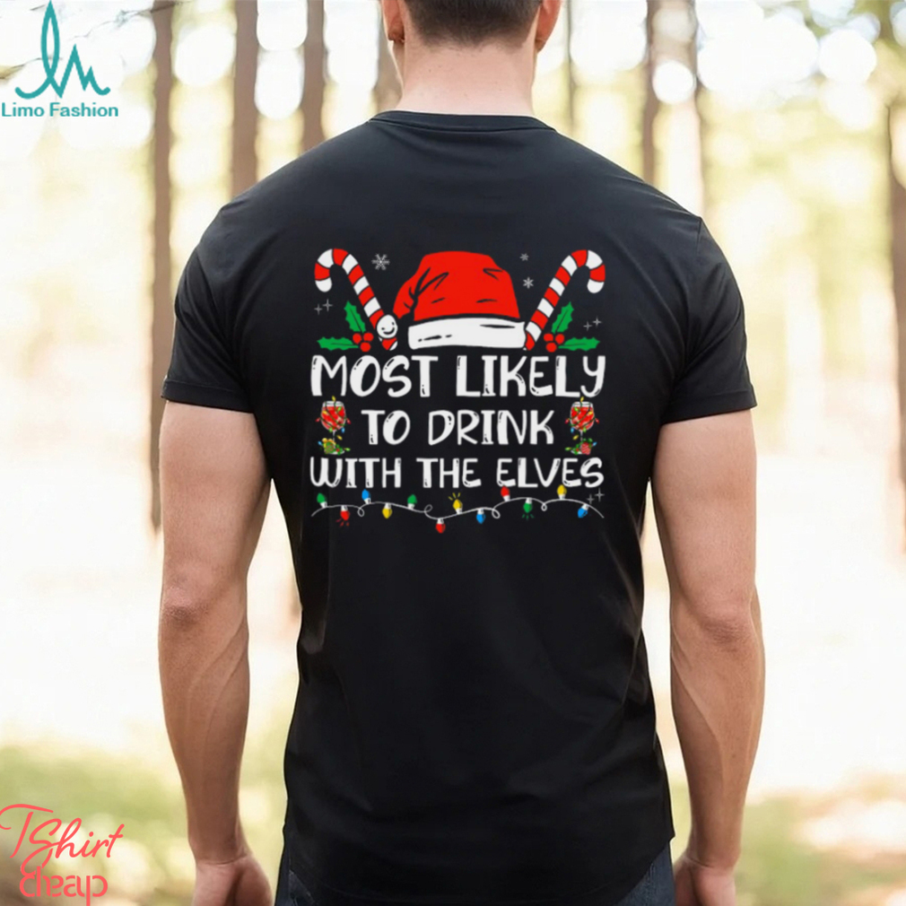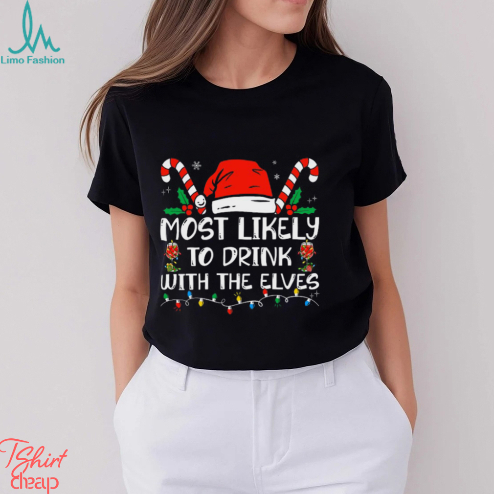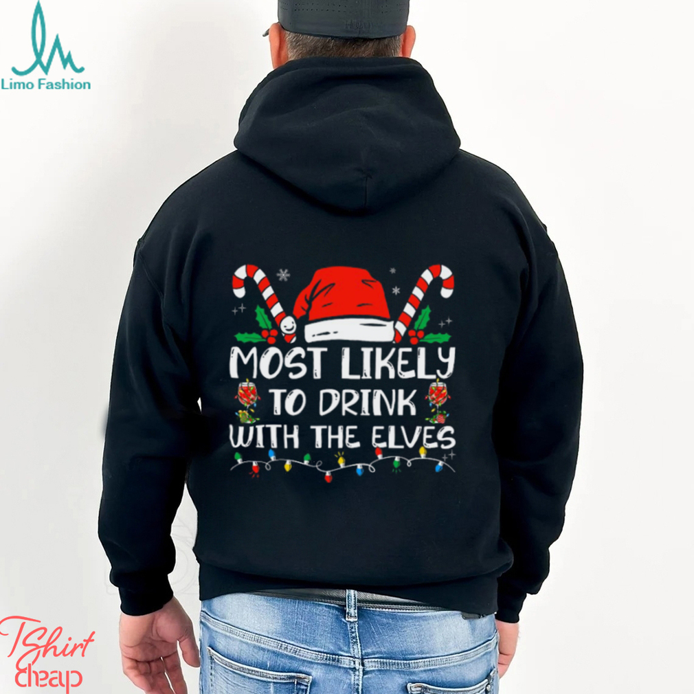 ()Most Likely To Drink With The Elves Funny Family Christmas Shirt hoodie, tank top, sweater and long sleeve t-shirt