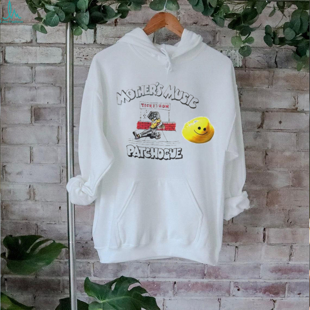 I was hoping Delores wouldn’t become a Mother’s music ticketron patchogue shirt aggressive rooster, as my recently deceased “Lance” had been, before passing on to “rooster heaven” with the assistance of a local coyote. The rooster I currently had, Gordon, was a sweet boy and was very happy to have Lance gone. Lance had been a fierce rooster who attacked literally every moving thing but the hens and me (displaying extreme good taste and discretion) and I was not prepared to live through as second several years of yet another “attack rooster”. Neither were the neighbor dogs. Nor were the neighbors, for that matter. I really didn’t think this would be a problem, as Delores was such a sweet rooster – showing no violence or aggression at all, and just wanted to sit on my shoulder (rather like a parrot) and look around. He’d snuggle against anyone’s neck or in anyone’s lap who would hold him and he adored being petted. Delores ran around digging for bugs in the lawn – but was just as happy sitting by the kitchen sink watching me trim vegetables or whatever. He made (as all my chickens did) a truce with the cats and was friends with the goats, horses and my other rooster, Gordon. They all slept together in the barn at night.