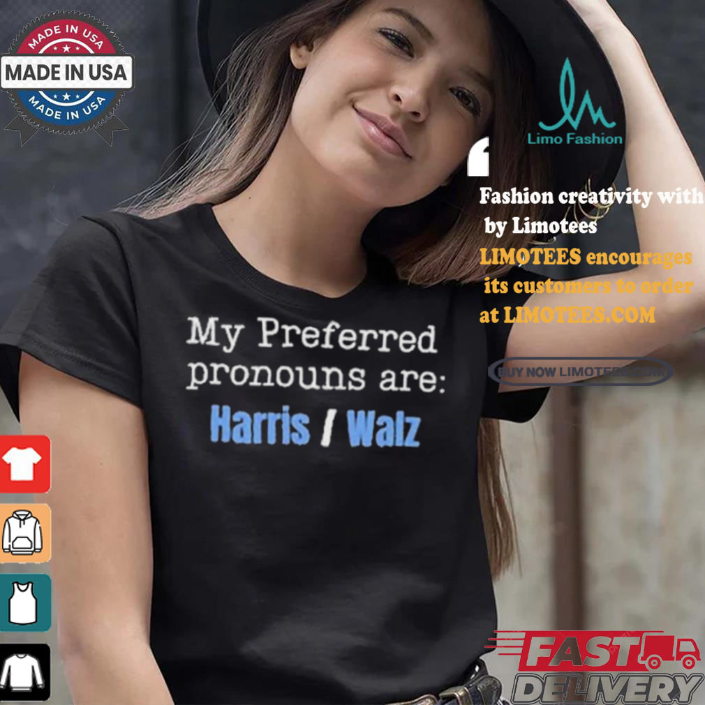The My Preferred Pronouns Are Harris Walz T shirt to answering your question is experience. We exist to experience; we know we exist because we experience our own existence. The second key is observation. We observe our existence, our experience. We witness, record, and reflect upon our experience. The third key is intention. From observations of our experiences, we build a theory of “reality”, and make choices to act or not act based on that theory. We form an intention to create a specific experience that we want to observe. Now we have a sufficient solution to the problem. Experience, observation, and intention together create reality. They cannot exist without each other. None is more fundamental than the other, and none can be removed without destroying the others. Experience, observation, and intention: the grand experiment. We exist to try things, experience them, and observe the result. There is no meaning beyond that; when we are gone, all those things are gone too. We should use the little time we have to make as many experiments as possible. We have been blessed with the opportunity to experience, observe, and intend, and we should not waste it.