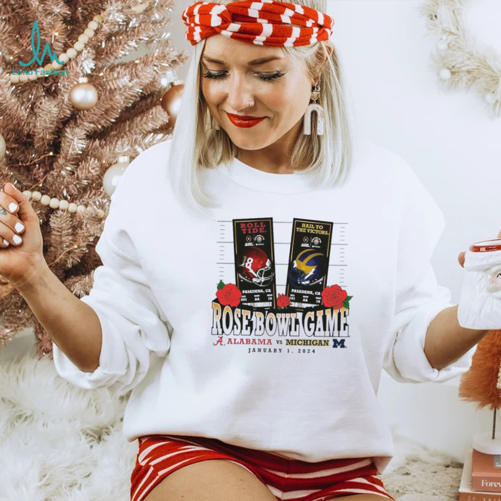 ()It takes place on Christmas and most of the NCAA Michigan Wolverines Vs. Alabama Crimson Tide 2024 Rose Bowl Shirt revolves around the festivities involving it. Such as Max being Gotham’s Santa Claus, The Tree Lighting Ceremony and the costume ball prior to Christmas day. Hell the last lines between Alfred and Bruce were wishing each other Merry Christmas.