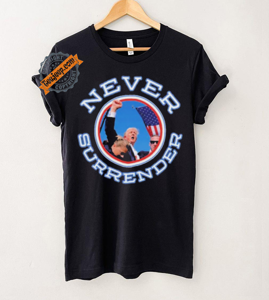 At the other outpost also all was finished. During this night we reached the Never Surrender Donald Trump 2024 New Shirt of the Tannu Ola and descended again into a valley covered with dense bushes and twined with a whole network of small rivers and streams. It was the headwaters of the Buret Hei. About one o’clock we stopped and began to feed our horses, as the grass just there was very good. Here we thought ourselves in safety. We saw many calming indications. On the mountains were seen the grazing herds of reindeers and yaks and approaching Soyots confirmed our supposition. Here behind the Tannu Ola the Soyots had not seen the Red soldiers. We presented to these Soyots a brick of tea and saw them depart happy and sure that we were “Tzagan,” a “good people.