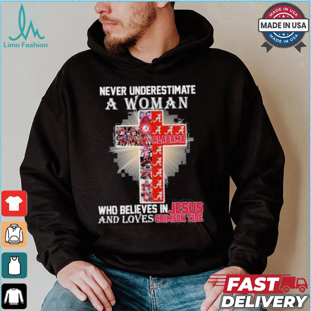 Every year she wrote a letter to Santa Claus asking for a Never Underestimate A Woman Who Believes In Jesus And Loves Alabama Crimson Tide T Shirt of things she knew would come to her only by a miracle. Though just 7 years old she knew She was lucky enough to end up in the orphanage though she has nothing a kid craves for. But every year she is disappointed by just a piece of cake and a little used frock as Xmas gift. She stopped believing in Santa and lost Xmas spirit ever. When she was 12 years old she realized the main thing she is missing and wished just one thing this Xmas.. Love. The next morning the patron of the orphanage comes to her and says ‘you are adopted by a childless family. Please pack your things and be ready to meet them. ‘ Her voice dominated the Christmas Carols ever after that.