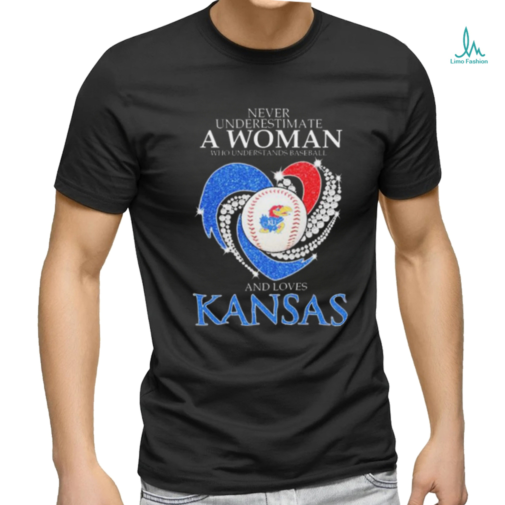 ()Never Underestimate A Woman Who Understands Baseball And Loves Kansas Jayhawks Heart Diamonds 2024 shirt, Hoodie, Sweater, Vneck, Unisex and T-shirt