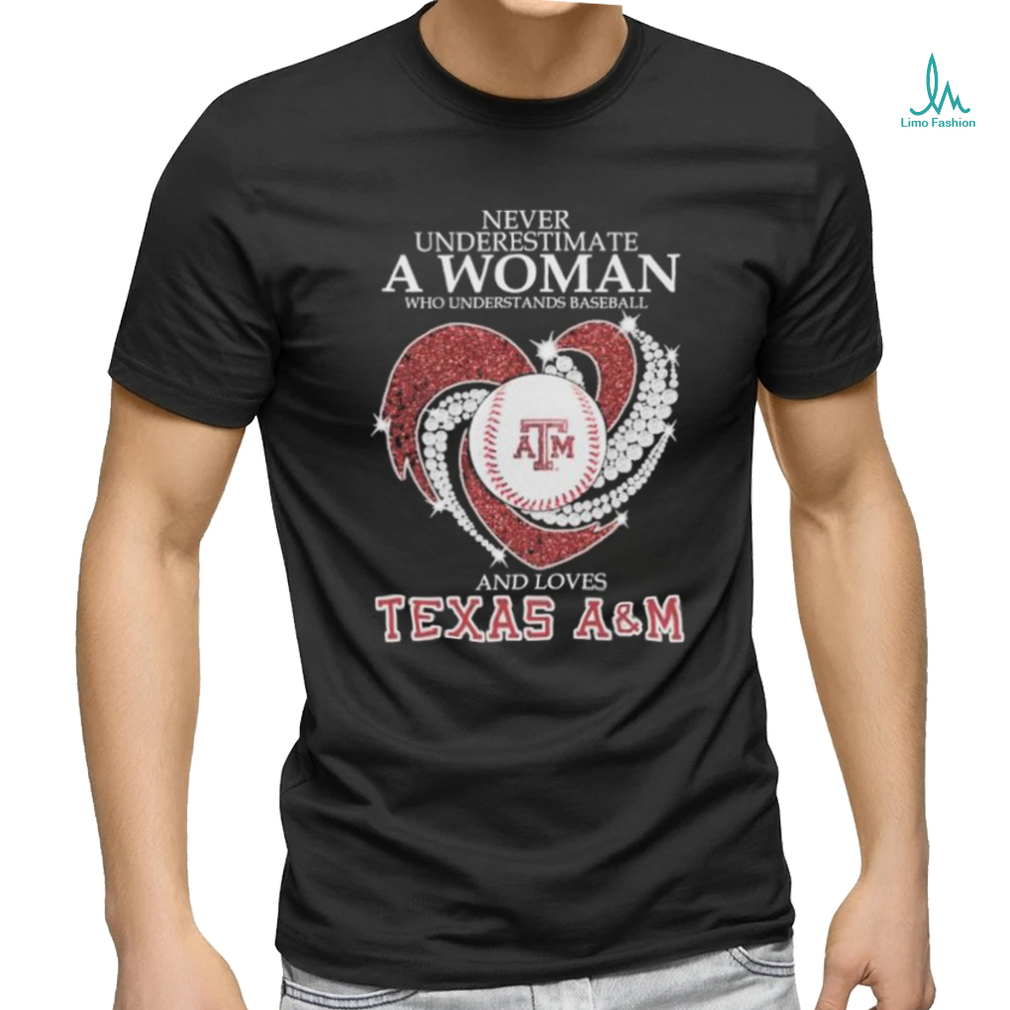 Never Underestimate A Woman Who Understands Baseball And Loves Texas A&M Aggies Diamonds Shirt, Hoodie, Sweater, Vneck, Unisex and T-shirt