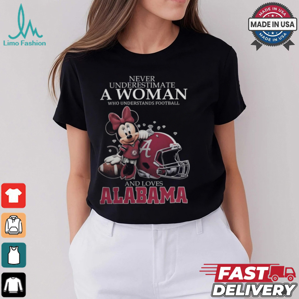 Never Underestimate A Woman Who Understands Football And Loves Alabama Crimson Tide x Minnie Mouse T Shirt hoodie, tank top, sweater and long sleeve t-shirt