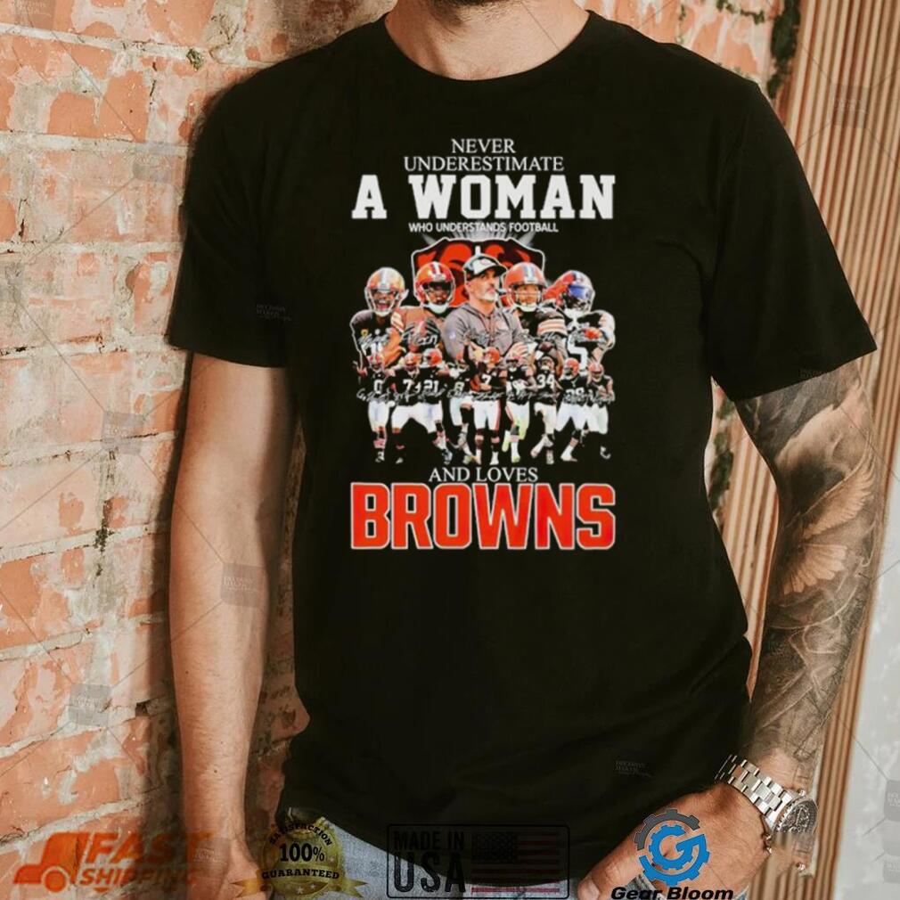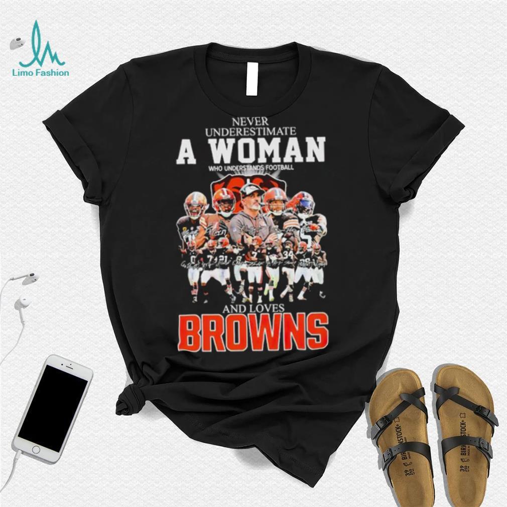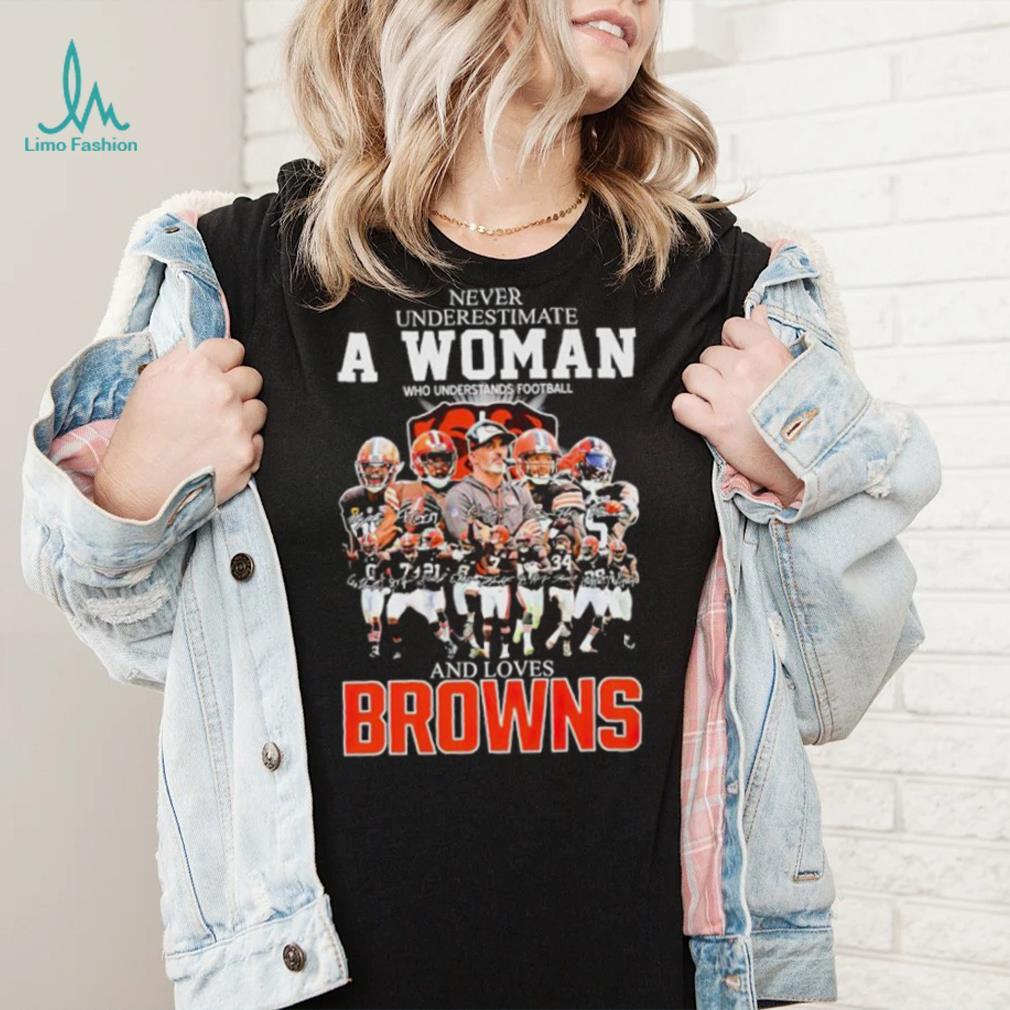 ()Never underestimate a woman who understands football and loves Browns signatures shirt