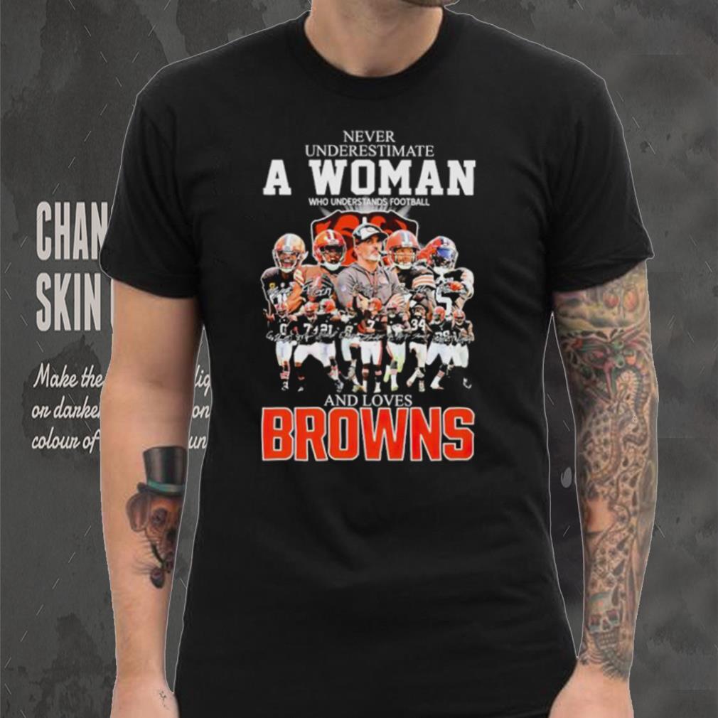 She finally went into the bedroom and said she Never underestimate a woman who understands football and loves Browns signatures shirt Tealc jump from the side of the bed high in the air and landing on my stomach and chest. He would get really close and let out a tear jerking cry into my face. He did this two more times before my wife figured out what he was doing and started towards me.