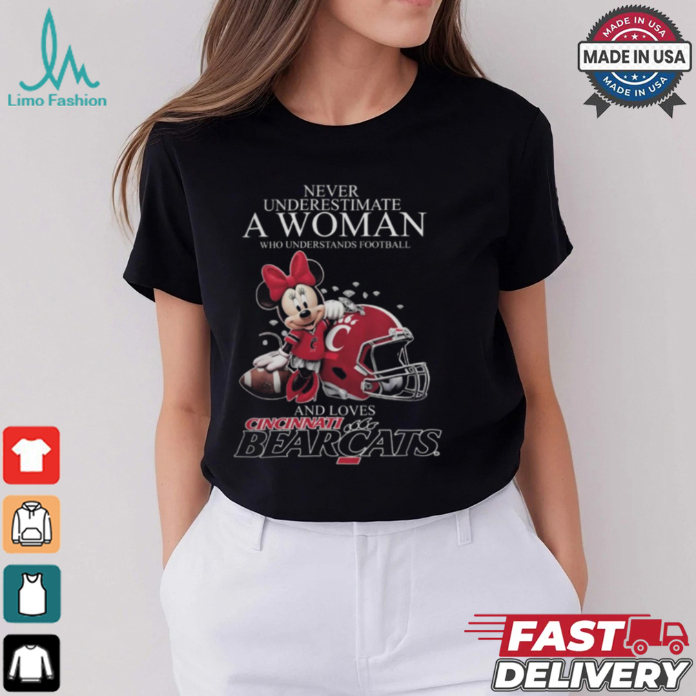 Never Underestimate A Woman Who Understands Football And Loves Cincinnati Bearcats x Minnie Mouse T Shirt hoodie, tank top, sweater and long sleeve t-shirt