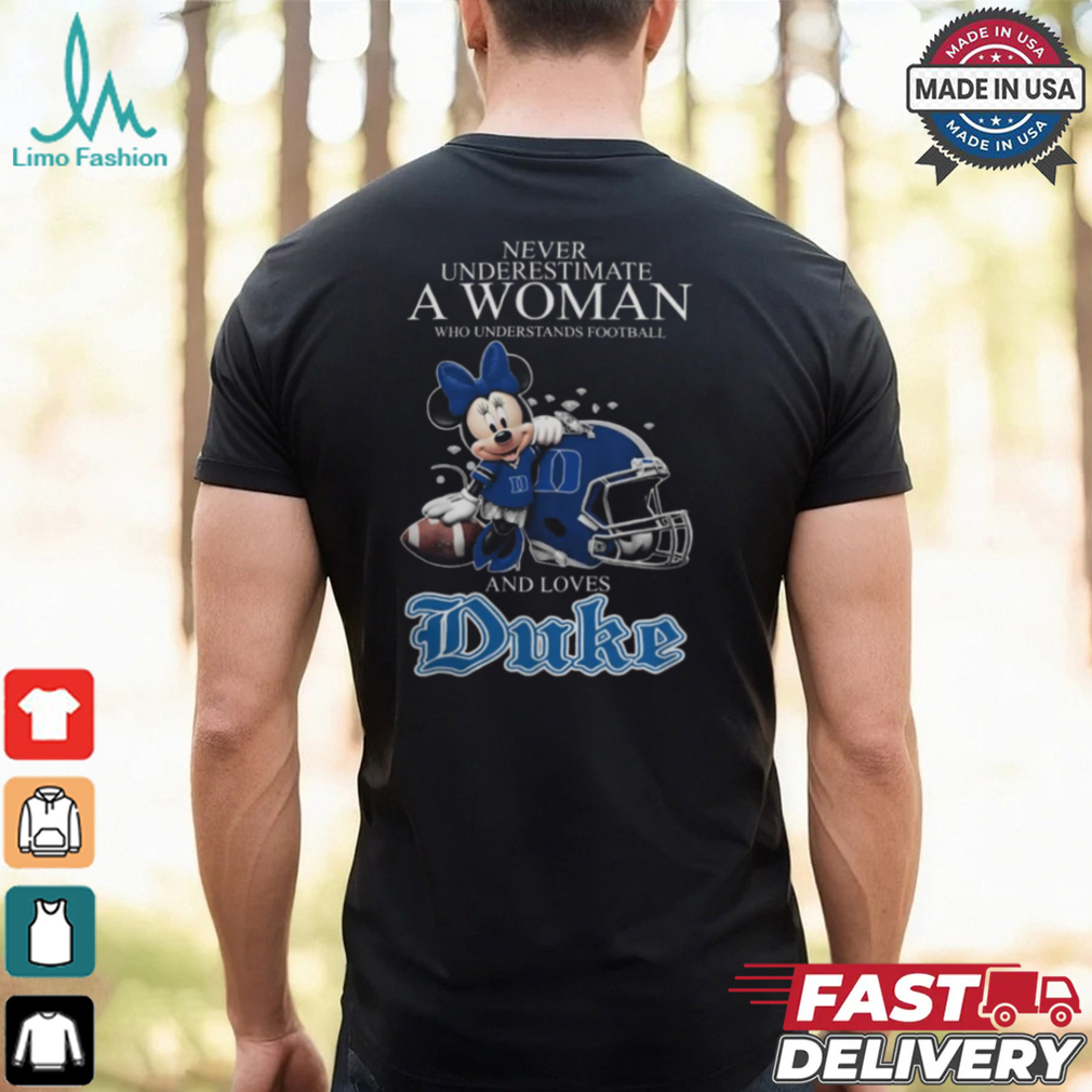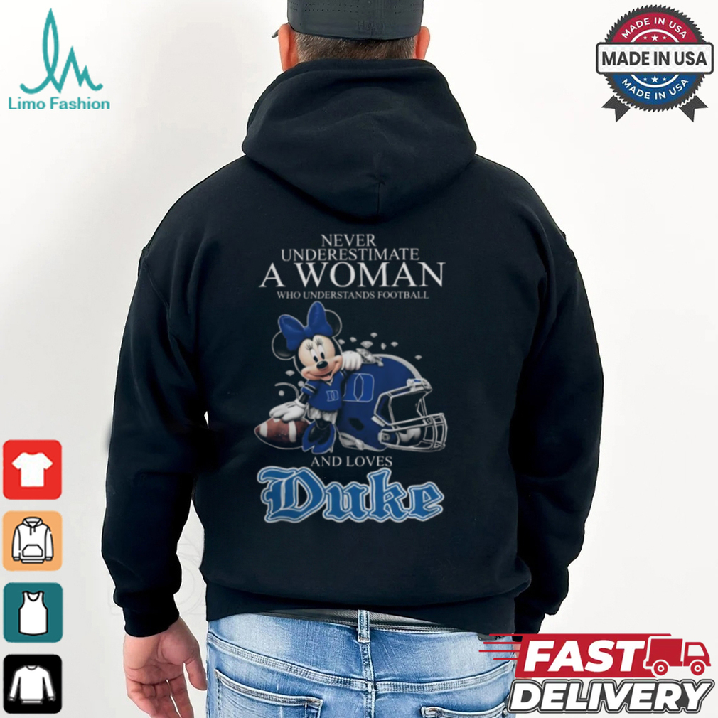 Never Underestimate A Woman Who Understands Football And Loves Duke Blue Devils x Minnie Mouse T Shirt hoodie, tank top, sweater and long sleeve t-shirt