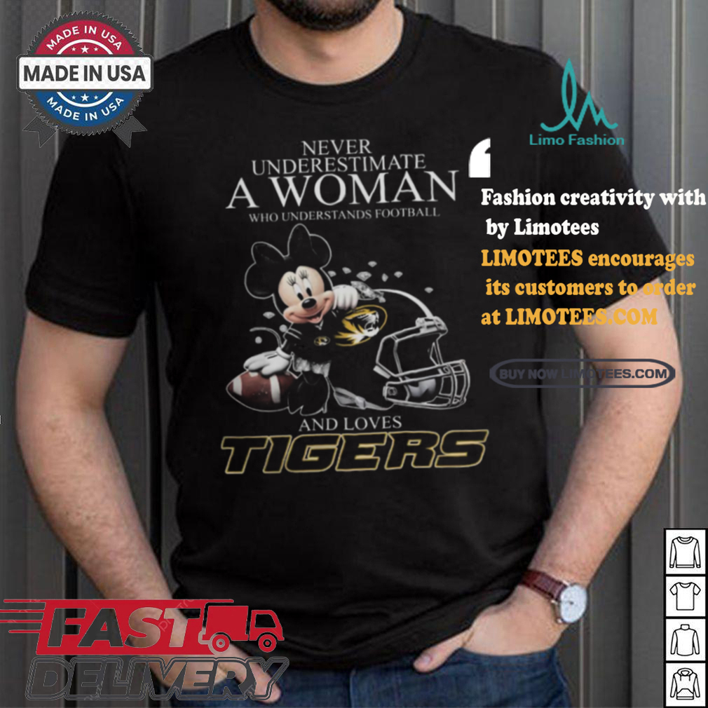 Never Underestimate A Woman Who Understands Football And Loves Missouri Tigers x Minnie Mouse T Shirt