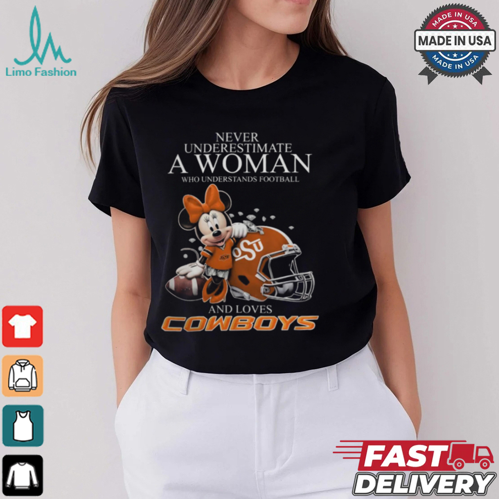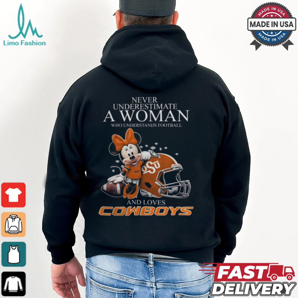 Never Underestimate A Woman Who Understands Football And Loves Oklahoma State Cowboys x Minnie Mouse T Shirt hoodie, tank top, sweater and long sleeve t-shirt