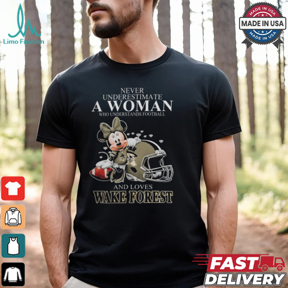 Never Underestimate A Woman Who Understands Football And Loves Wake Forest Demon Deacons x Minnie Mouse T Shirt hoodie, tank top, sweater and long sleeve t-shirt