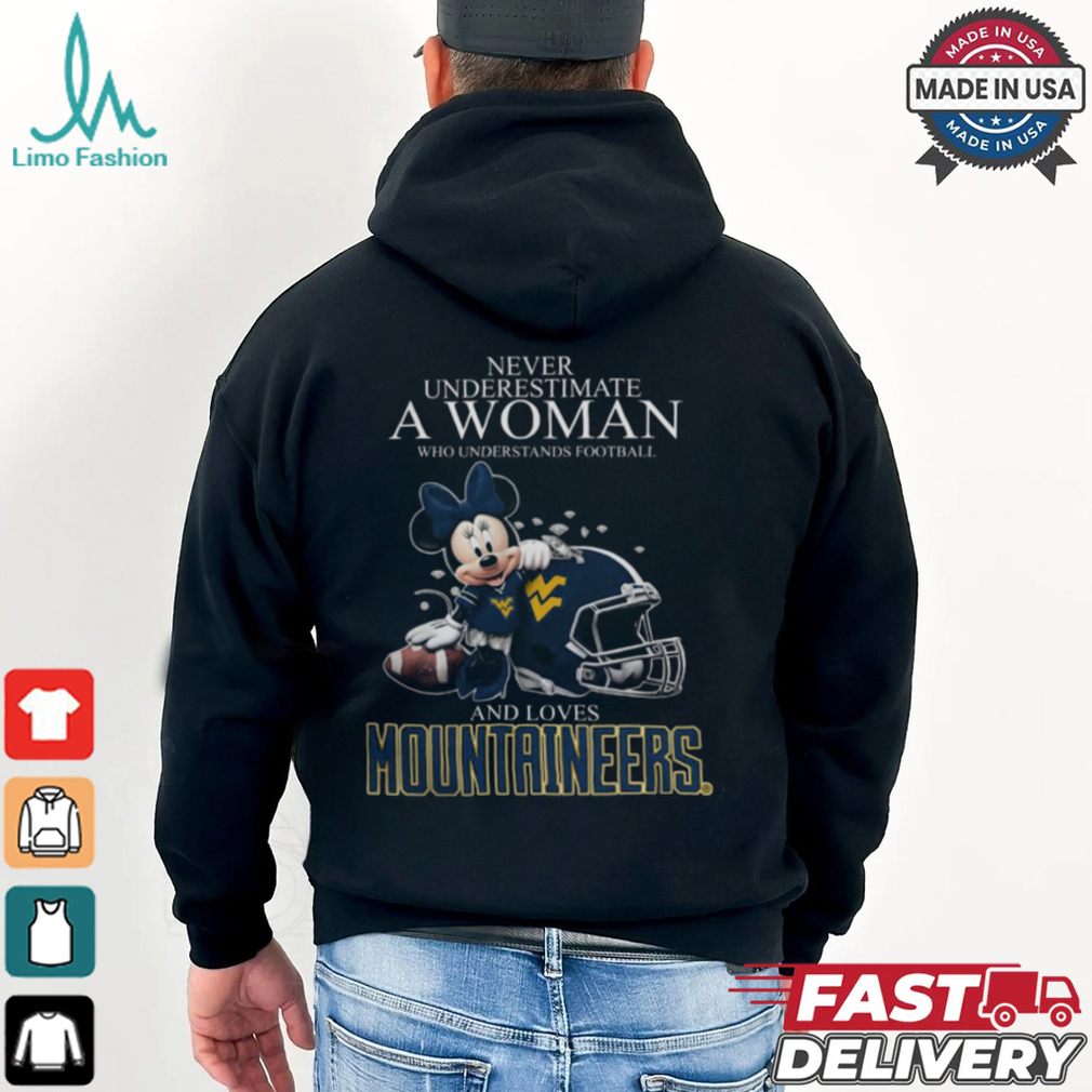 Never Underestimate A Woman Who Understands Football And Loves West Virginia Mountaineers x Minnie Mouse T Shirt hoodie, tank top, sweater and long sleeve t-shirt