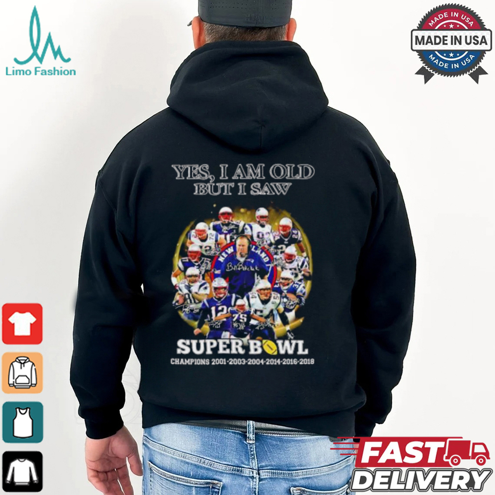 New England Patriots yes I am old but I saw Super Bowl Champions 6 Times signature shirt hoodie, tank top, sweater and long sleeve t-shirt