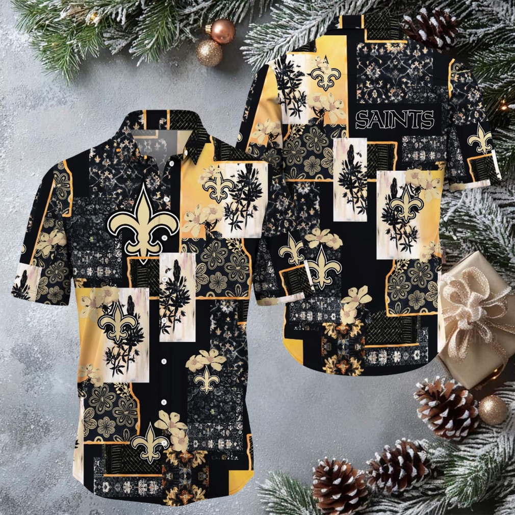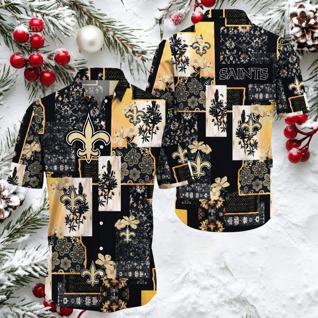 New Orleans Saints Hibiscus & Fleur de lis Hawaiian Shirt