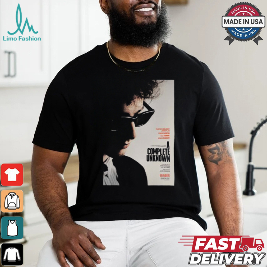 New Poster For A Complete Unknown The Bob Dylan Biopic Starring Timothee Chalamet Releasing In Theaters On December 25 Unisex T Shirt. Categories of this T-shirt is teejeep, New Poster For A Complete Unknown The Bob Dylan Biopic Starring Timothee Chalamet Releasing In Theaters On December 25 Unisex T Shirt from Dadyshirt ✓ Unique designs ✓ Large assortment ✓ Comfortable ✓ High-quality ✓ Easy to care for ✓ Available in a range of colours and styles for men, women ✓ Shop now ✓