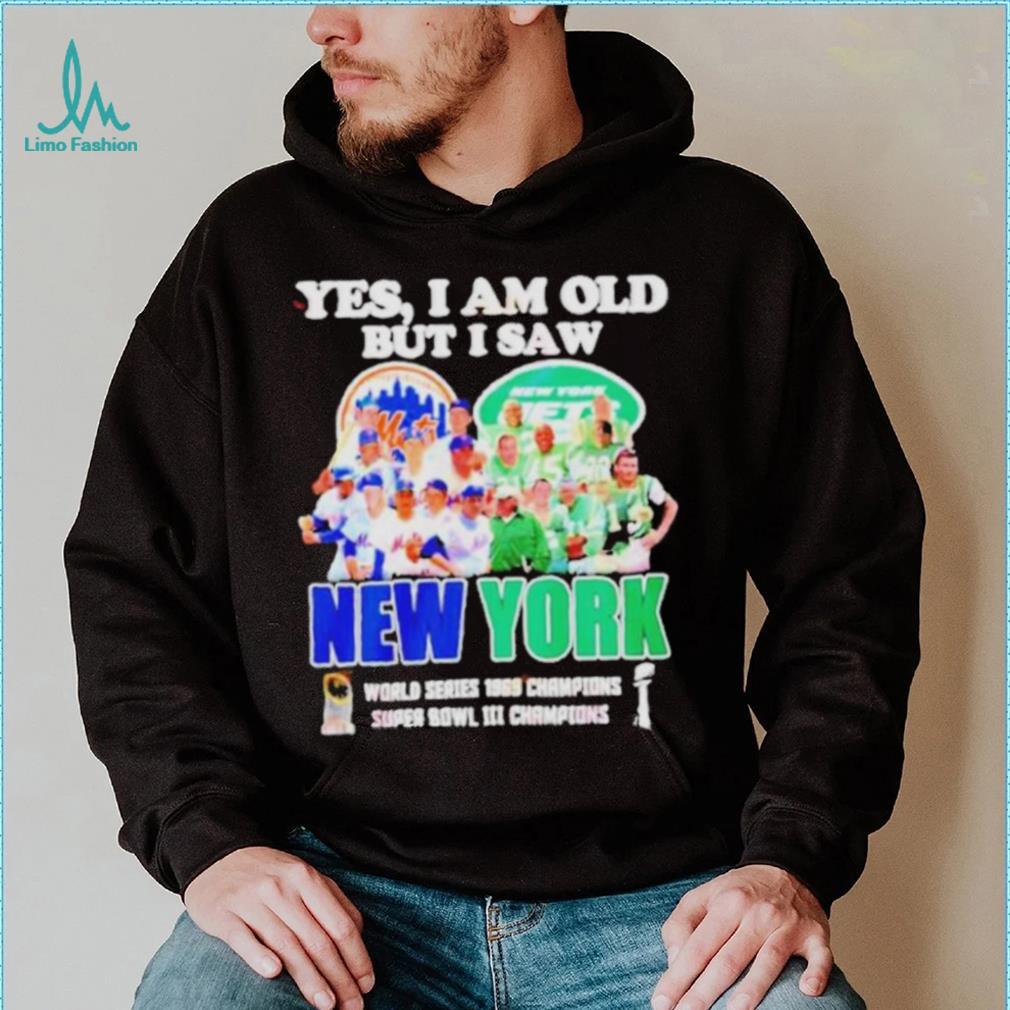New York yes i am old but i saw mets and jets world series 1969 champions super bowl iiI champions shirt